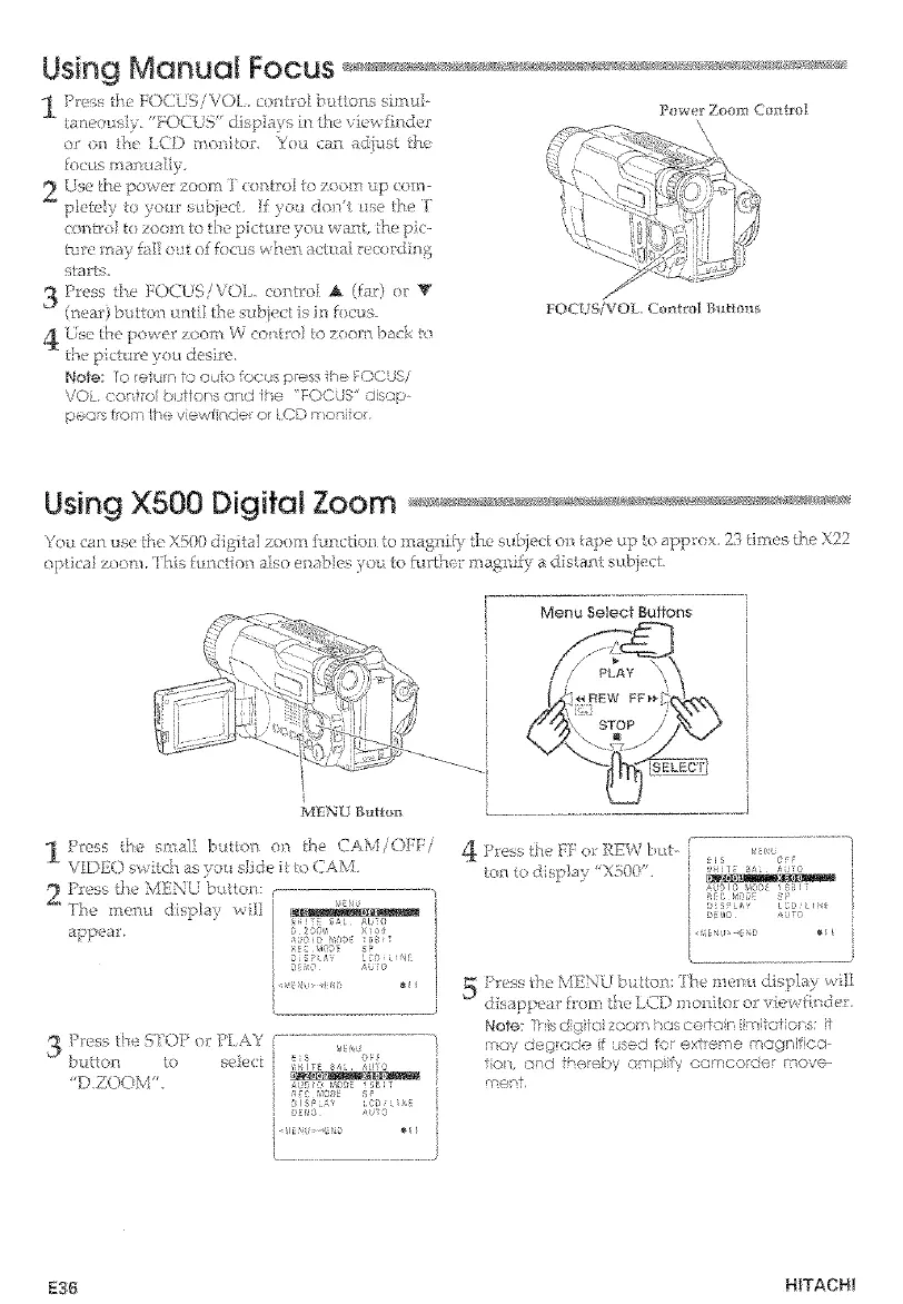 Note: ]o telurn t()ouio focs pess 1he FOCUS/