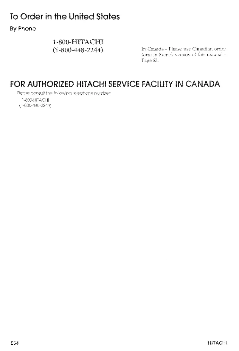 FOR AUTHORIZED HITACHI SERVICE FACILtW IN CANADA