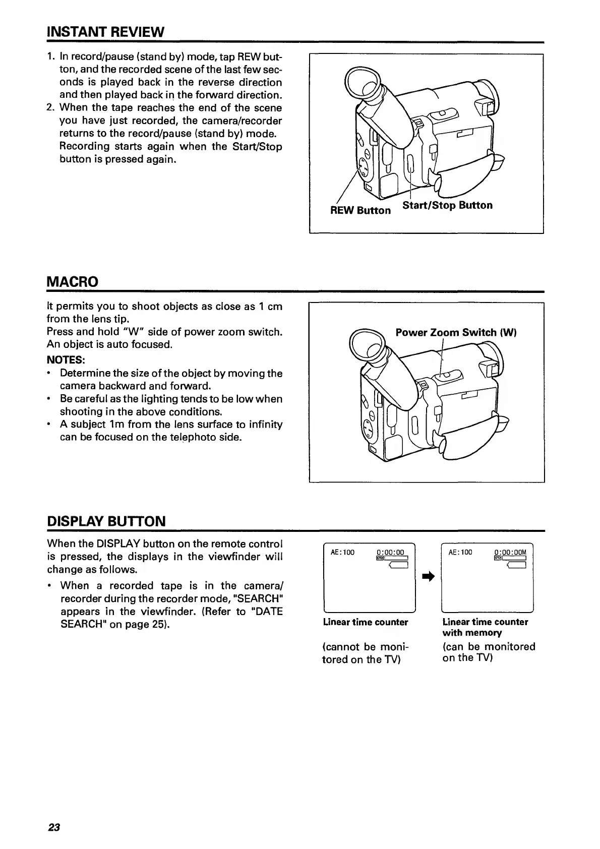 Hitachi VM-E110E - Instant Review; Macro; Display Button
