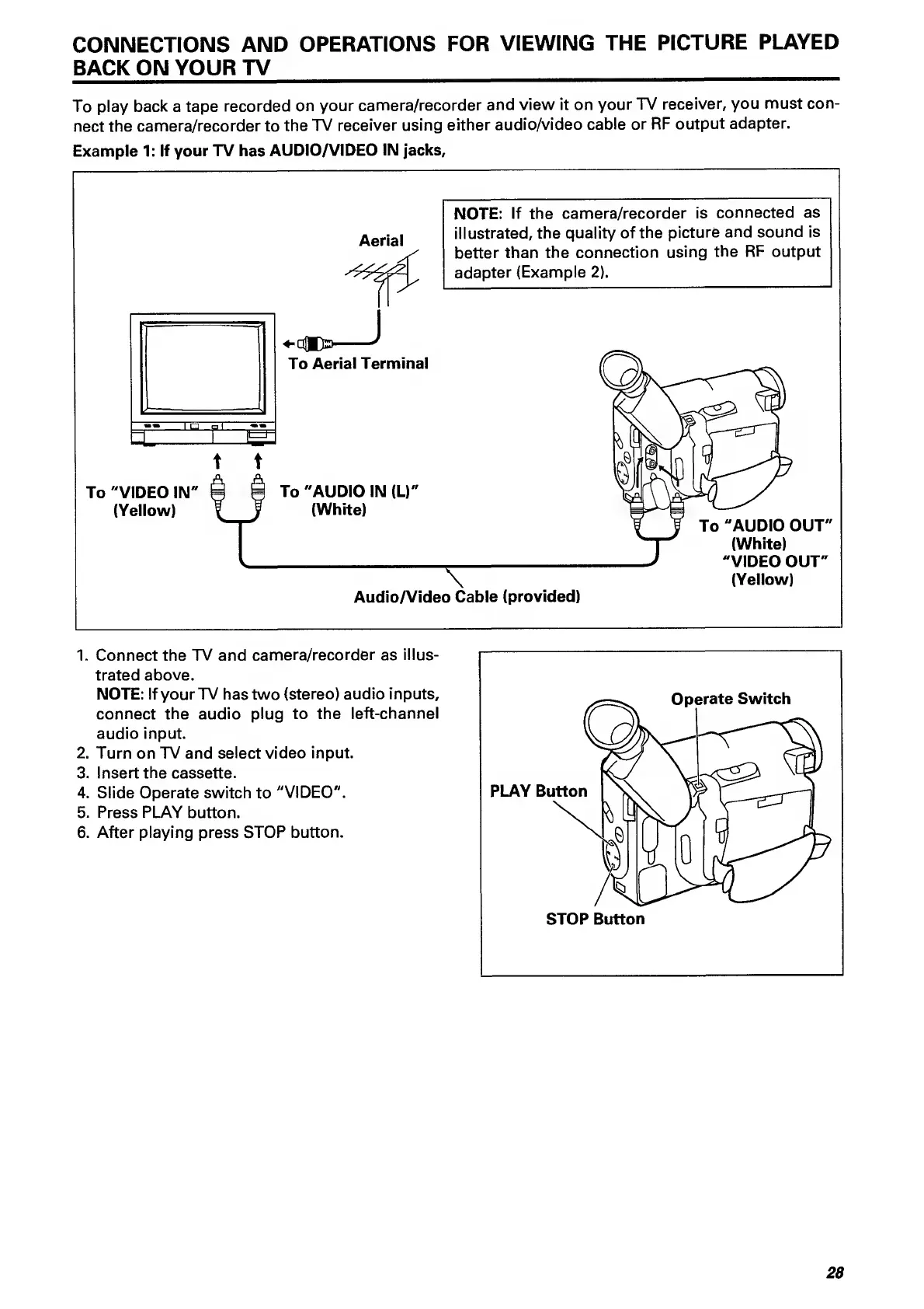 Hitachi VM-E110E - Connections and Operations for Viewing the Picture Played Back on Your TV