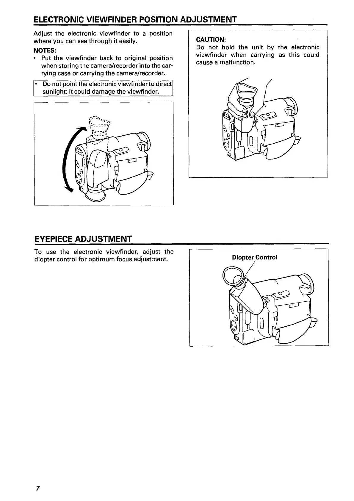 Hitachi VM-E110E - Electronic Viewfinder Position Adjustment.7; Eyepiece Adjustment