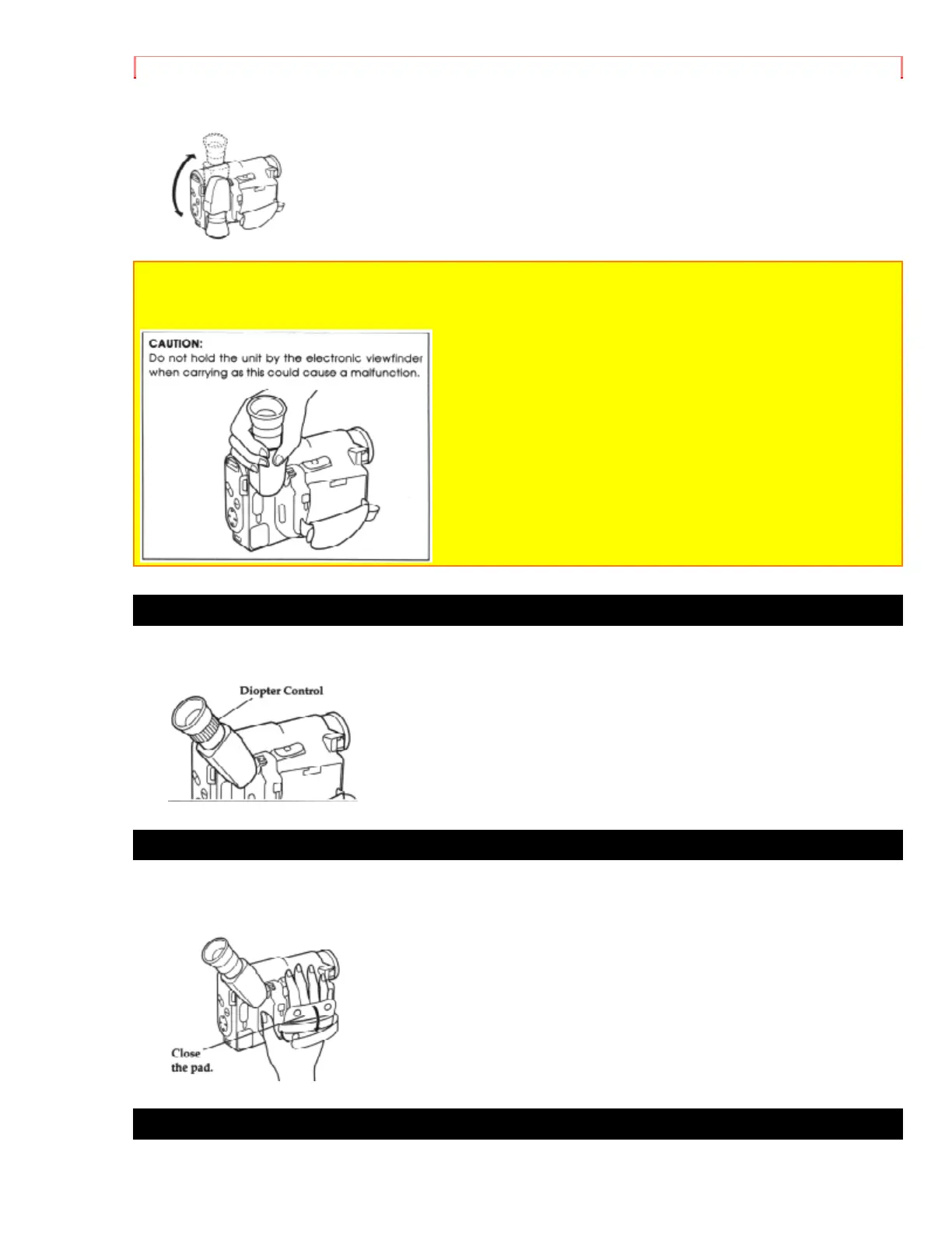 Do not hold the unit by the electronic viewfinder when carrying as this could cause a