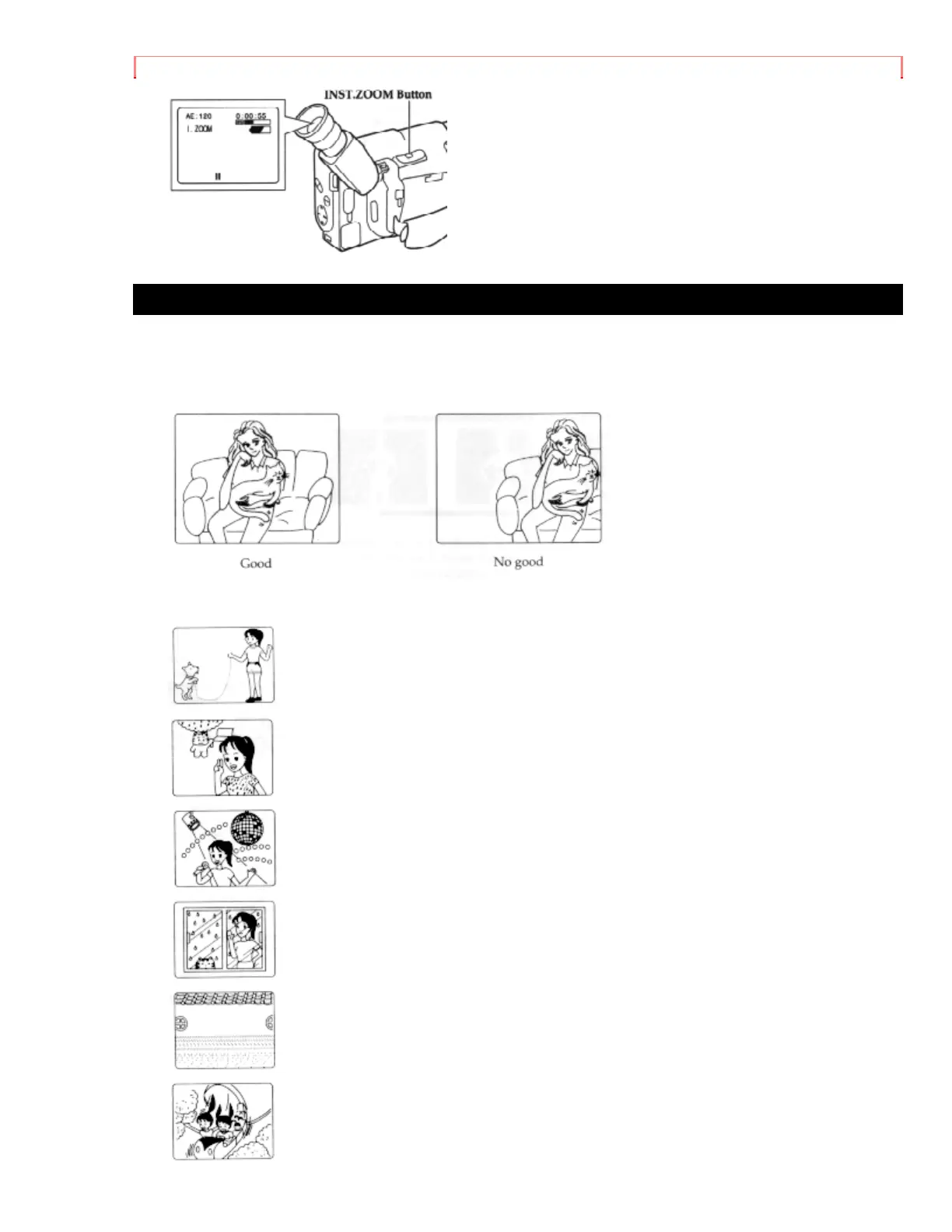The camcorder focuses the subject in the center of the viewfinder automatically unless