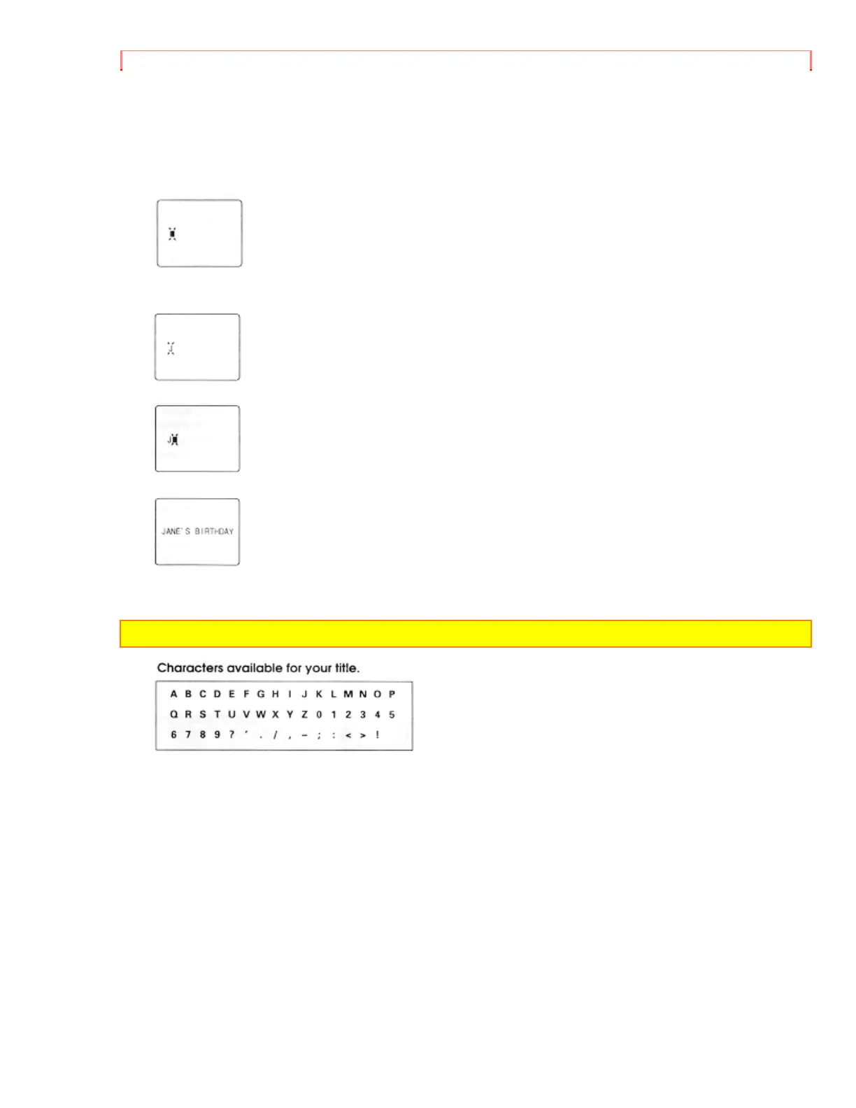 3. Press the TITLE ON/OFF button on the remote control and a flashing cursor appears