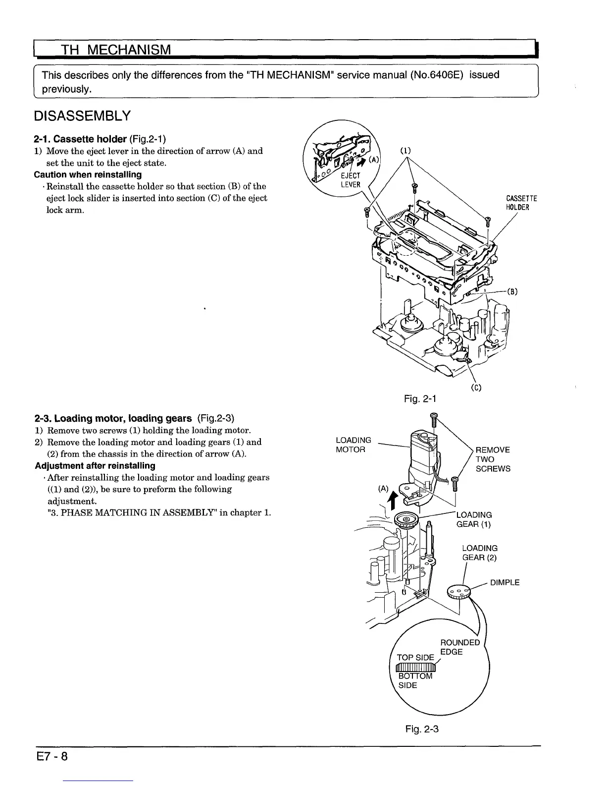 Hitachi VM-E330E - TH Mechanism Procedures; TH Mechanism Disassembly