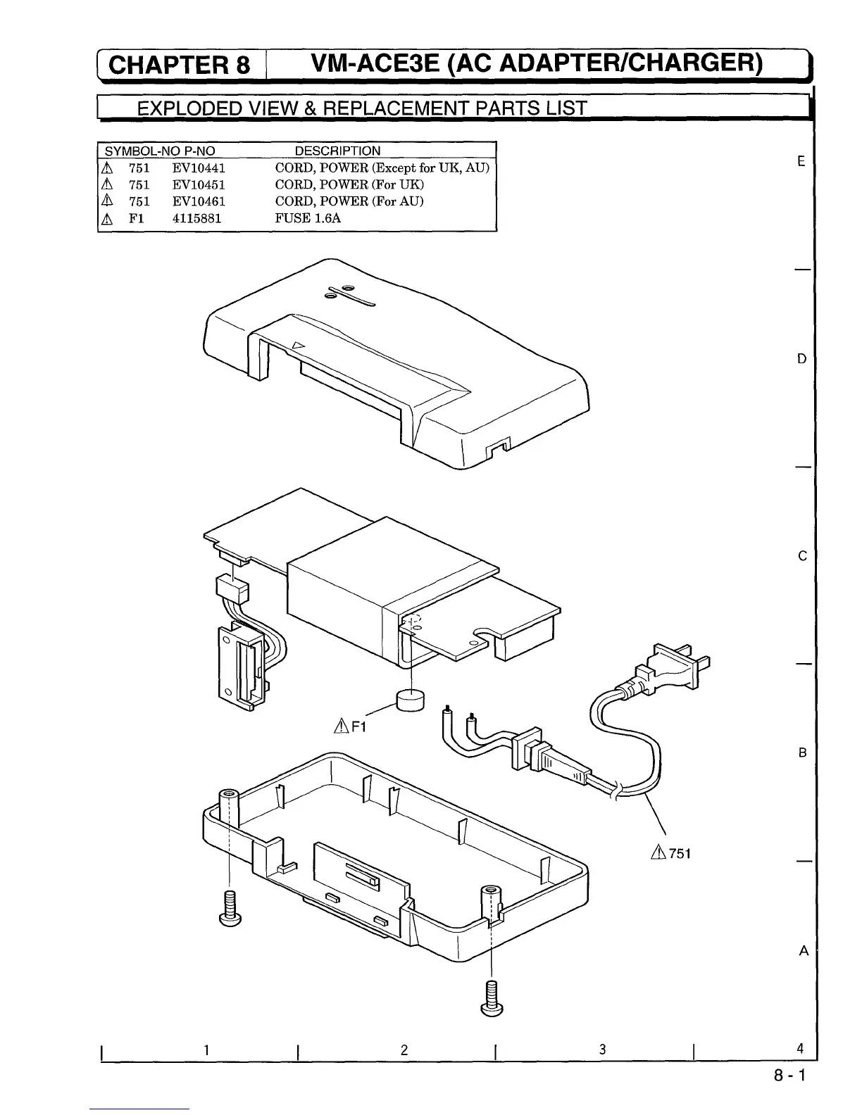 Hitachi VM-E330E - AC Adapter;Charger; Exploded View and Parts List