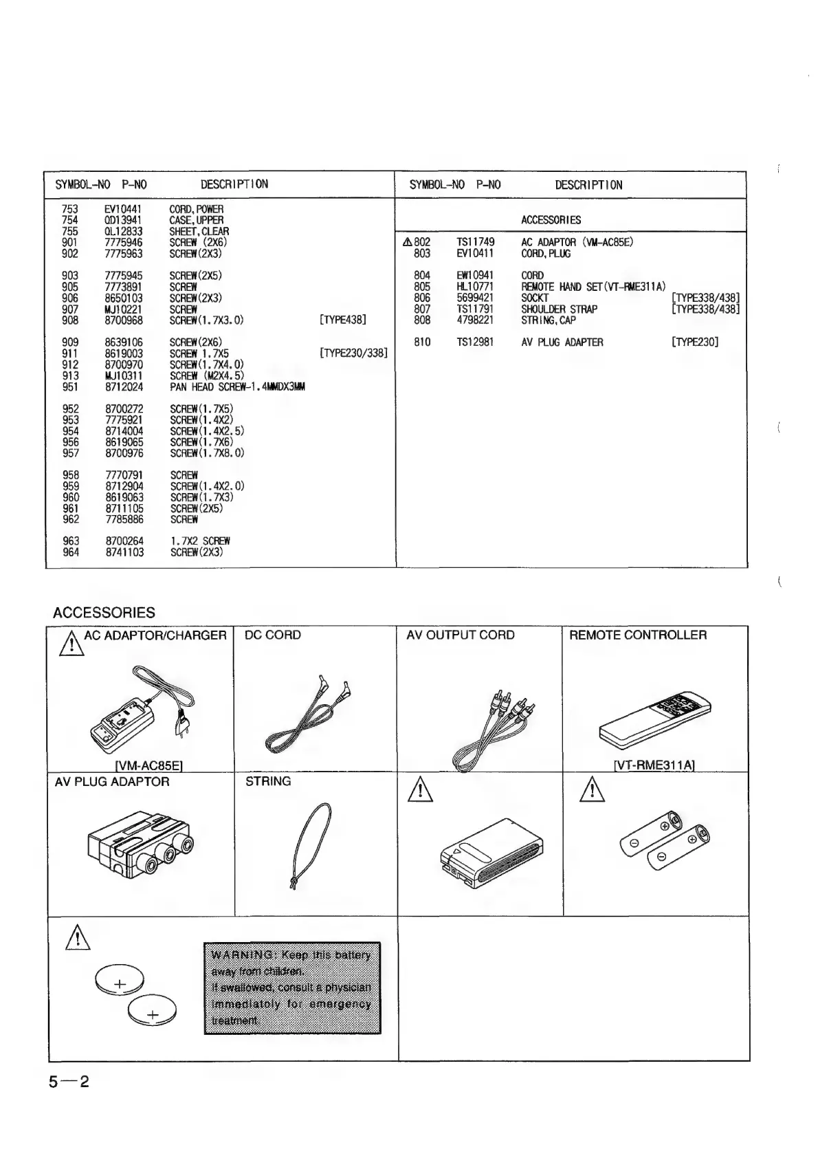 Hitachi VM-E338E - Accessory Parts and Diagrams