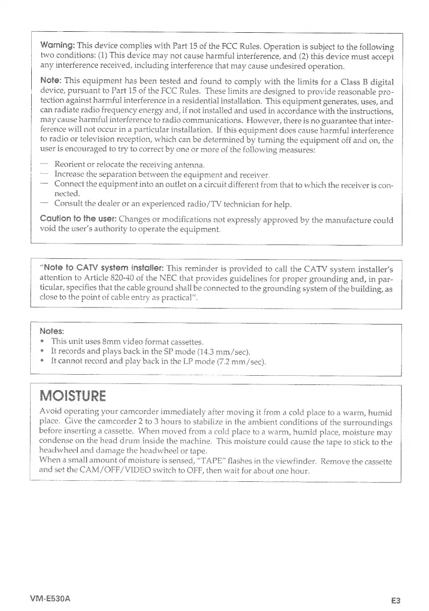 Hitachi VM-E530A - Moisture