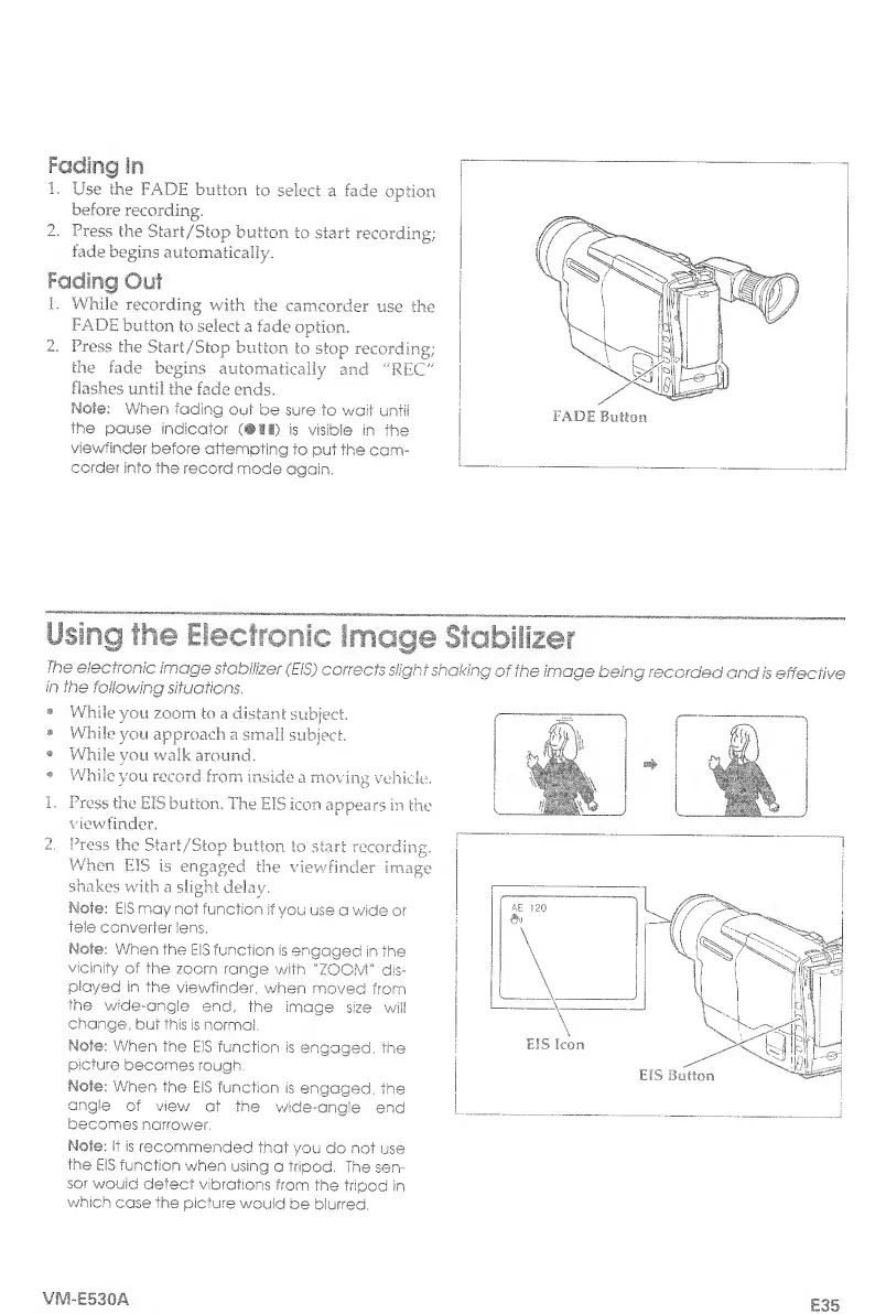 Hitachi VM-E530A - Fading in; Fading out; Using the Electronic Linage Stabilizer