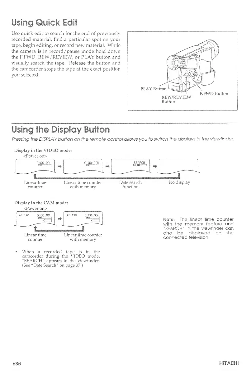 Hitachi VM-E530A - Using Quick Edit; Using the Display Button