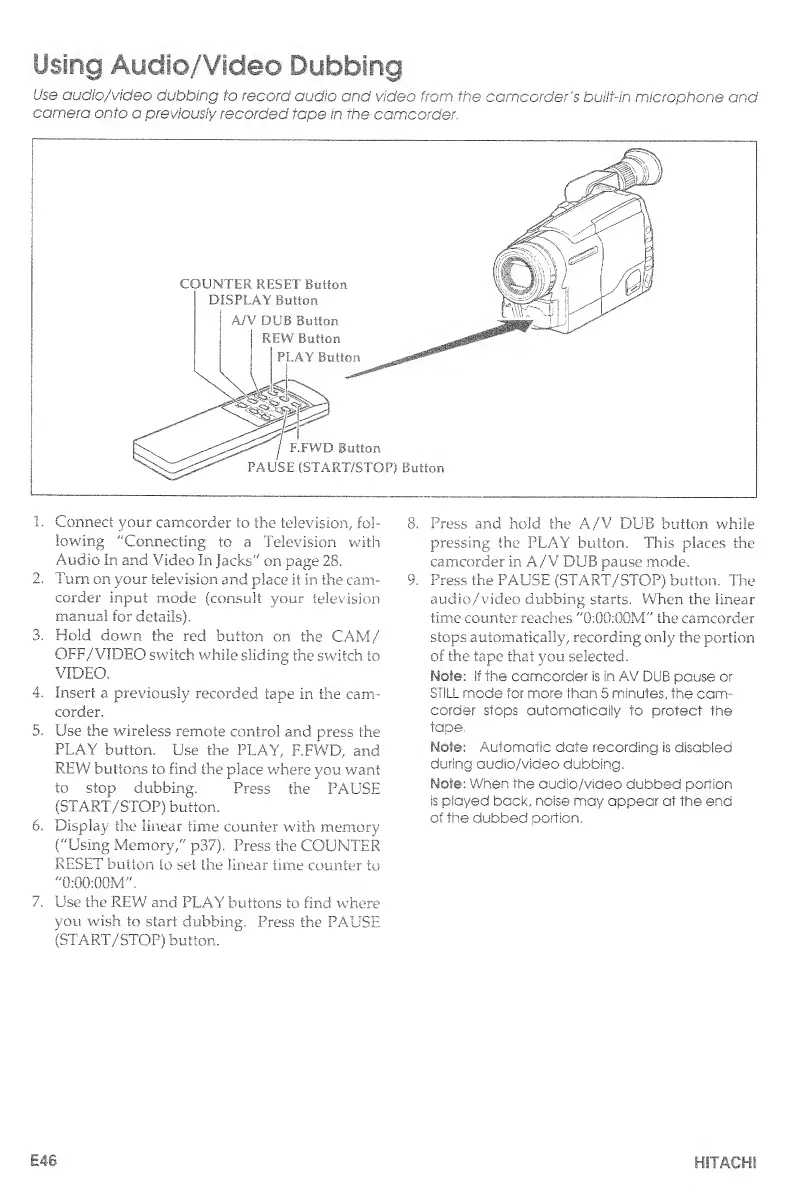 Hitachi VM-E530A - Using Audio;Video Dubbing