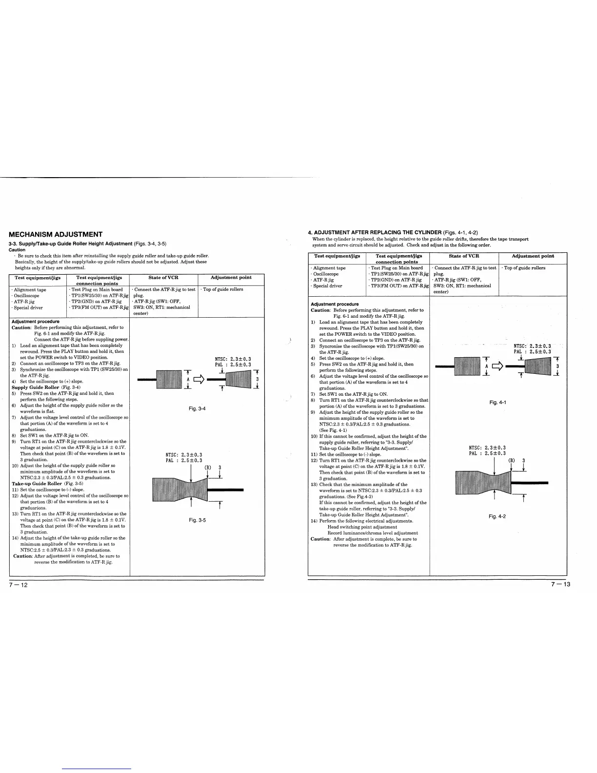 Hitachi VM-E535LA - Top View of Mechanism; Supply;Take-up Guide Roller Height Adjustment; Adjustment After Cylinder Replacement