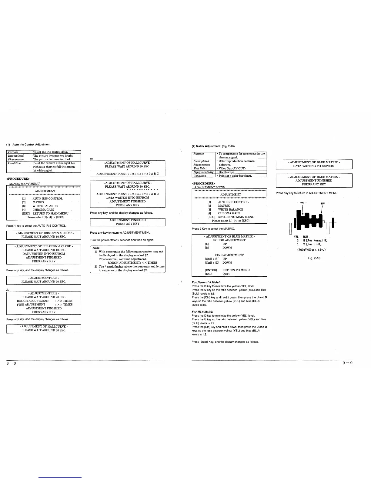 Hitachi VM-E635LA - Video Adjustments: Auto Iris, Matrix, and White Balance; Auto Iris Control Adjustment; Matrix Adjustment; White Balance Adjustment