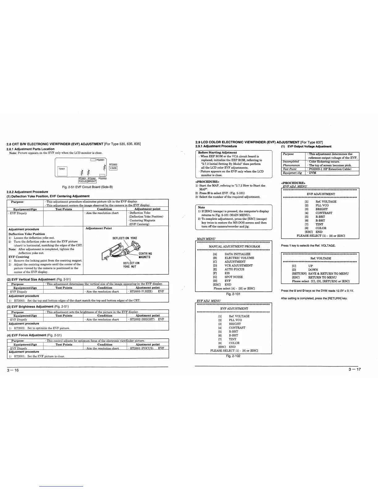 Hitachi VM-E635LA - EVF Adjustment Procedures (CRT); Deflection Yoke Position Adjustment; EVF Vertical Size Adjustment; EVF Focus Adjustment