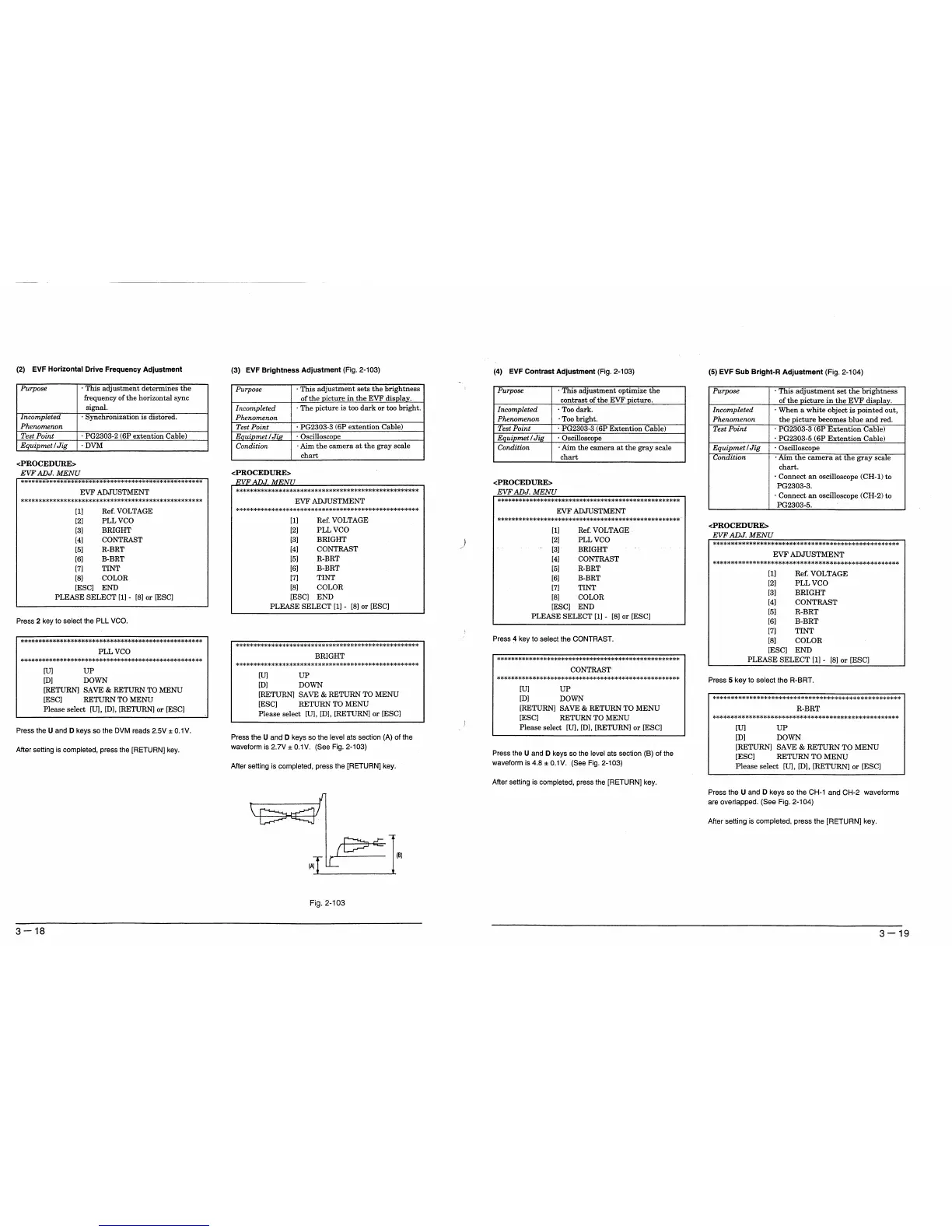Hitachi VM-E635LA - EVF Adjustment Procedures (LCD); EVF Voltage, Matrix, and Brightness Adjustments; EVF Contrast, Tint, and Chroma Level Adjustments