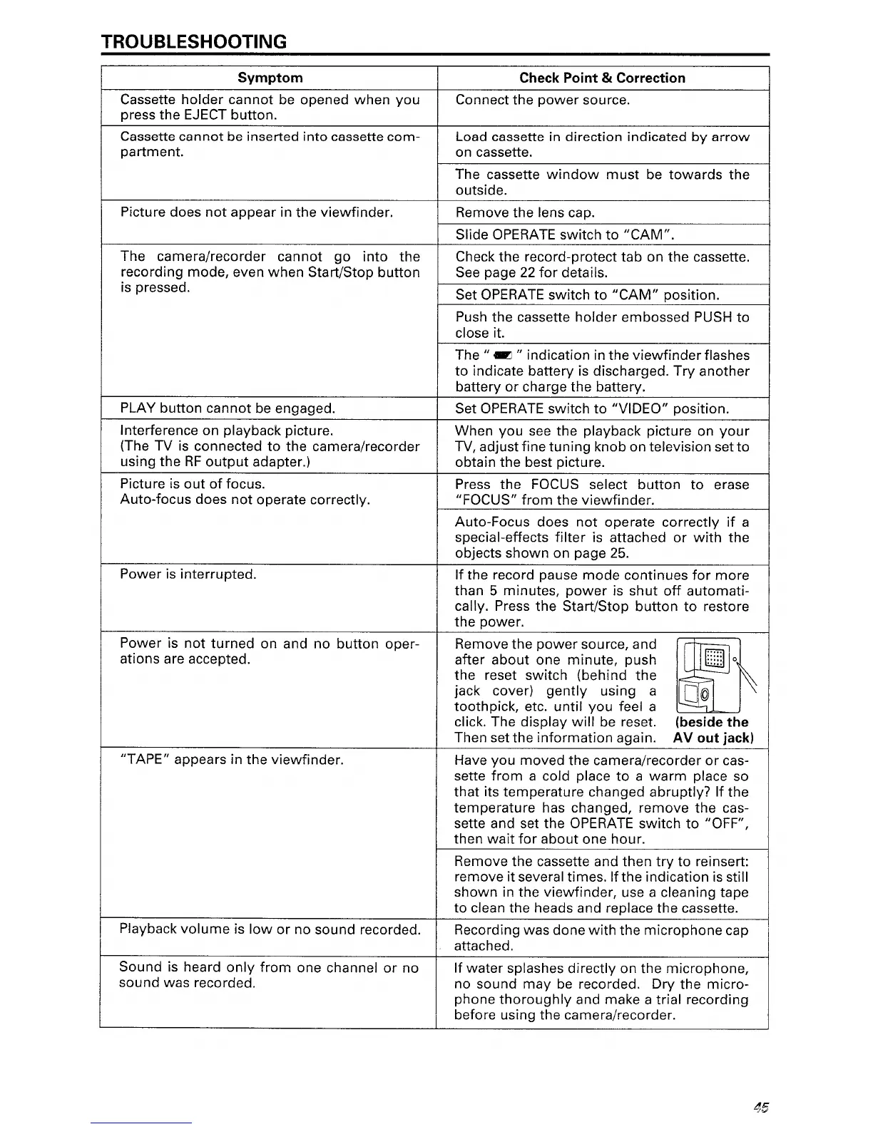 Hitachi VM-H70E - Troubleshooting; Common Issues and Solutions