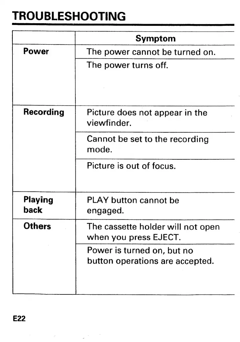 Hitachi VM-H80E - Troubleshooting