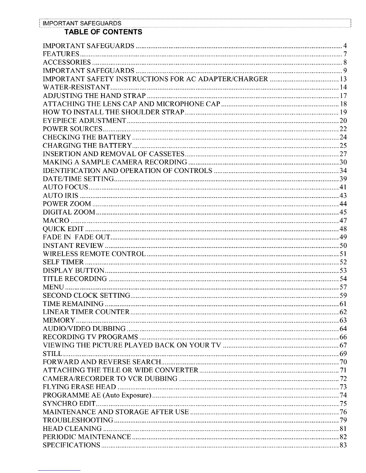 CAMERA/RECORDER TO VCR DUBBING ........................................................................................ 72