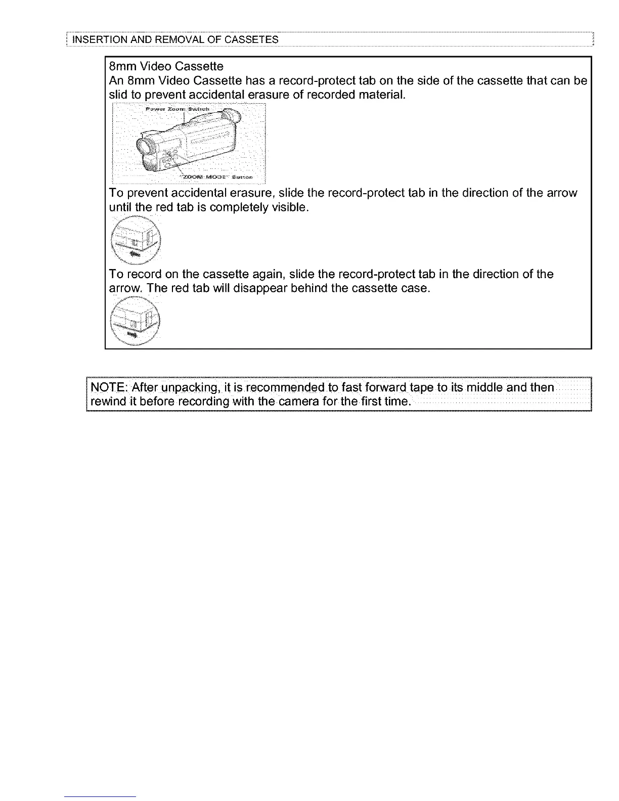 I NOTE: After unpacking, it is recommended to fast forward tape to its midd! e and then