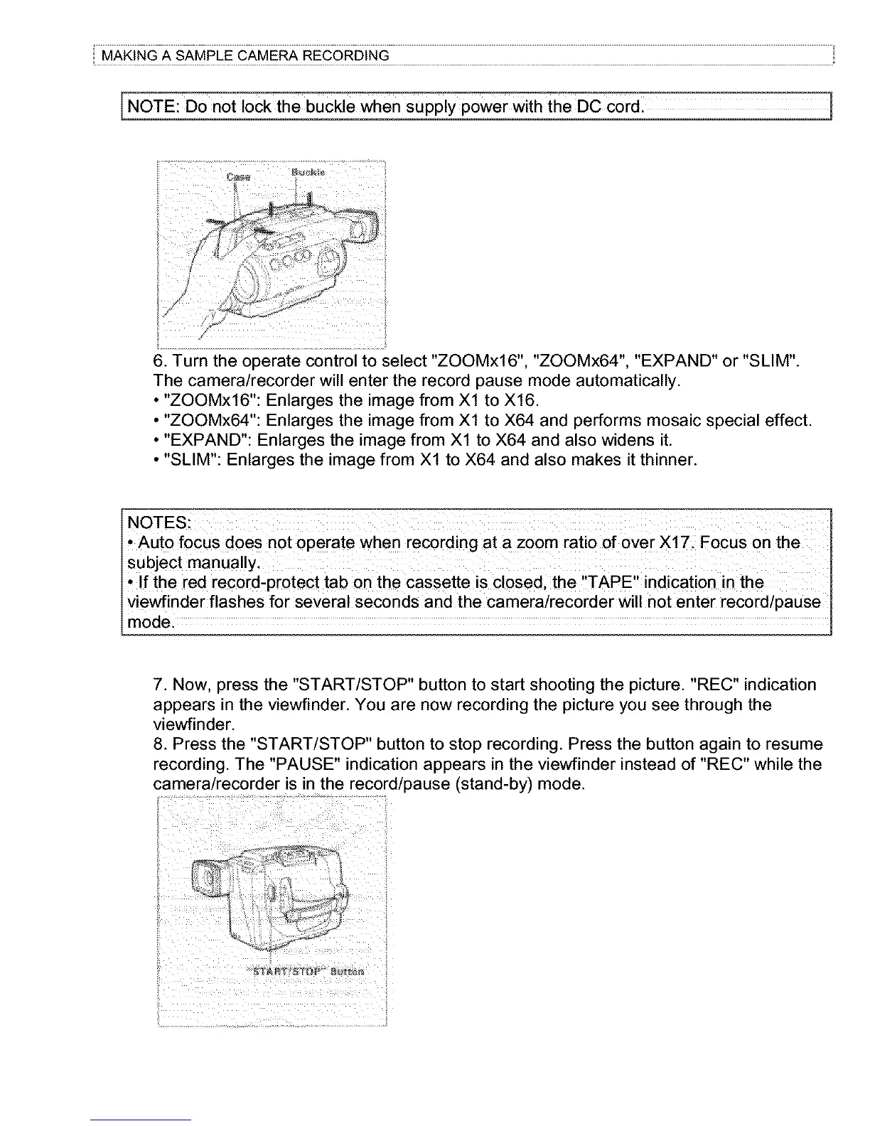8. Press the "START/STOP" button to stop recording. Press the button again to resume