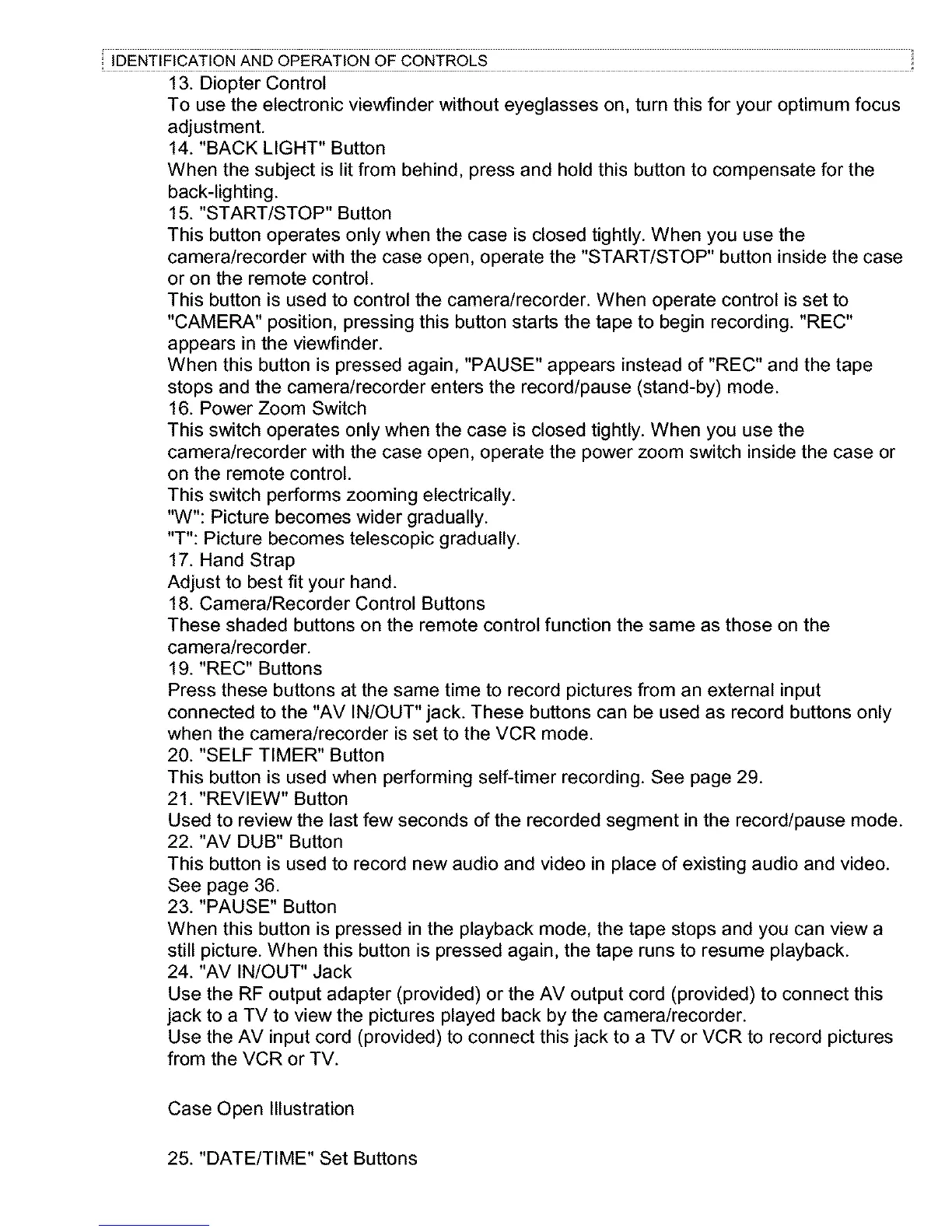 18. Camera/Recorder Control Buttons