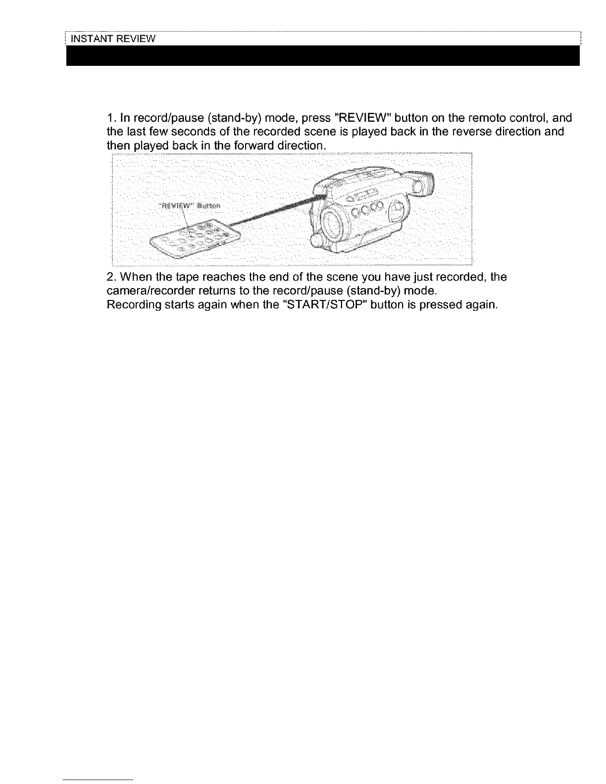 1. In record/pause (stand-by) mode, press "REVIEW" button on the remoto control, and