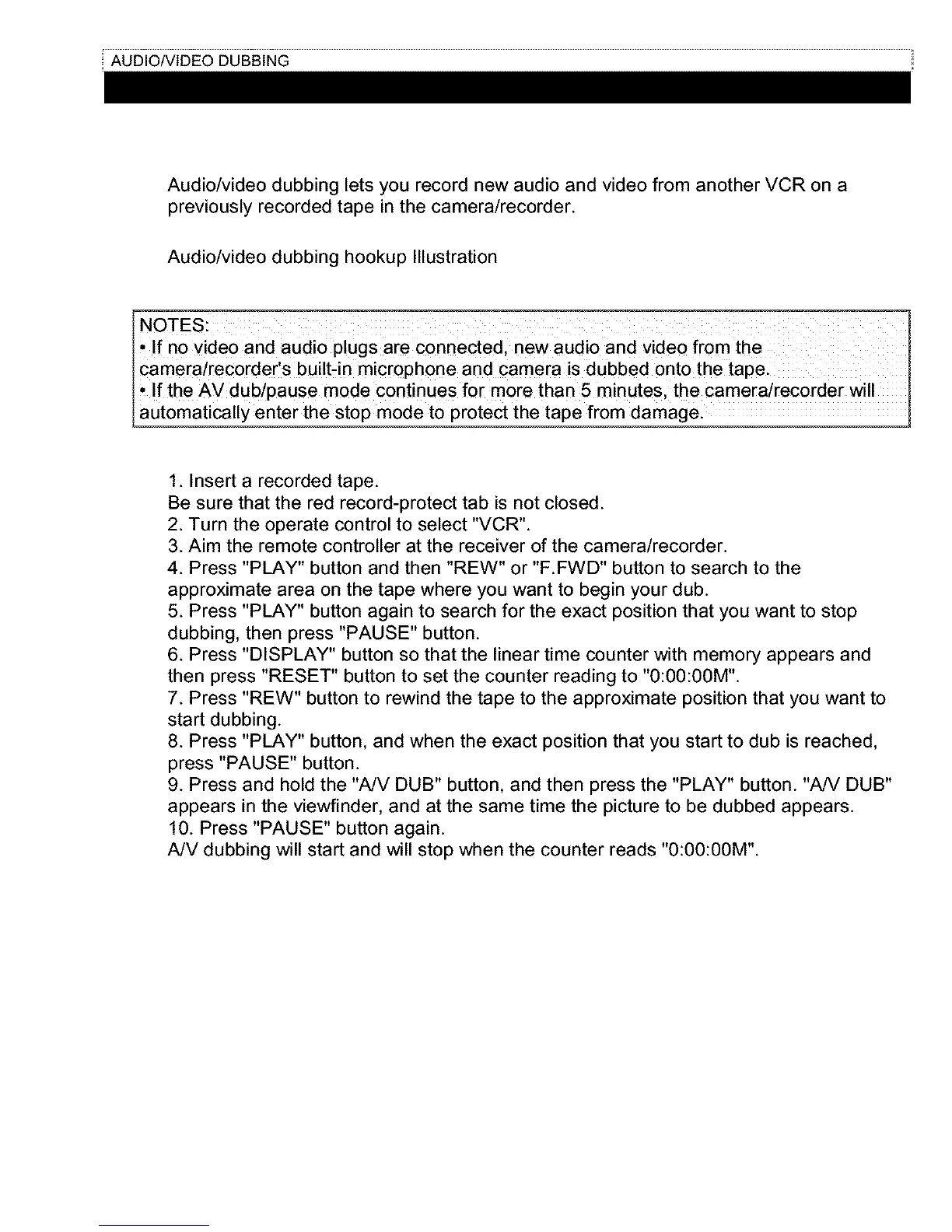 camera/recorder's built-in microphone and camera is dubbed onto the tape.