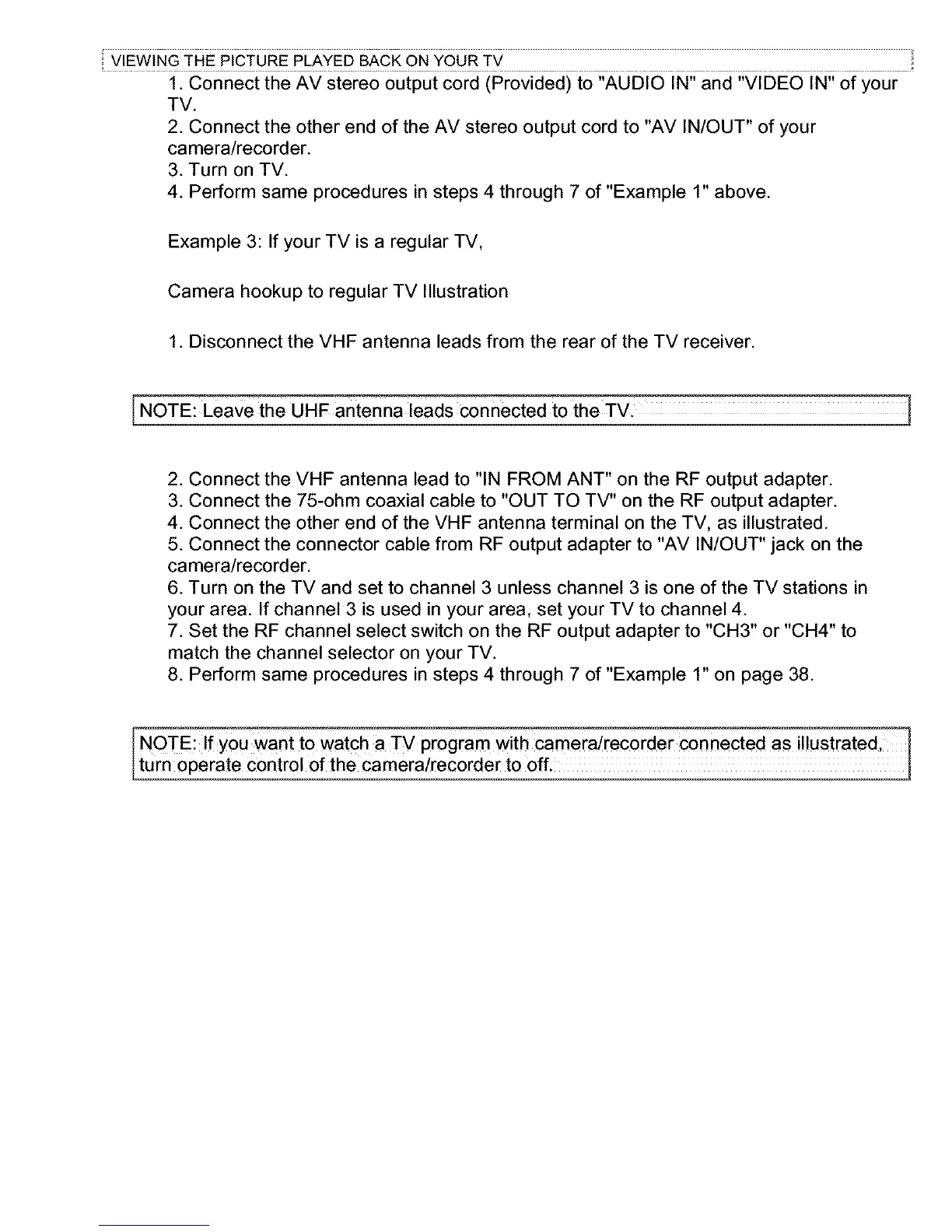 NOTE: If you want to watch a TV program with camera!recorder connected as illustrated, 1