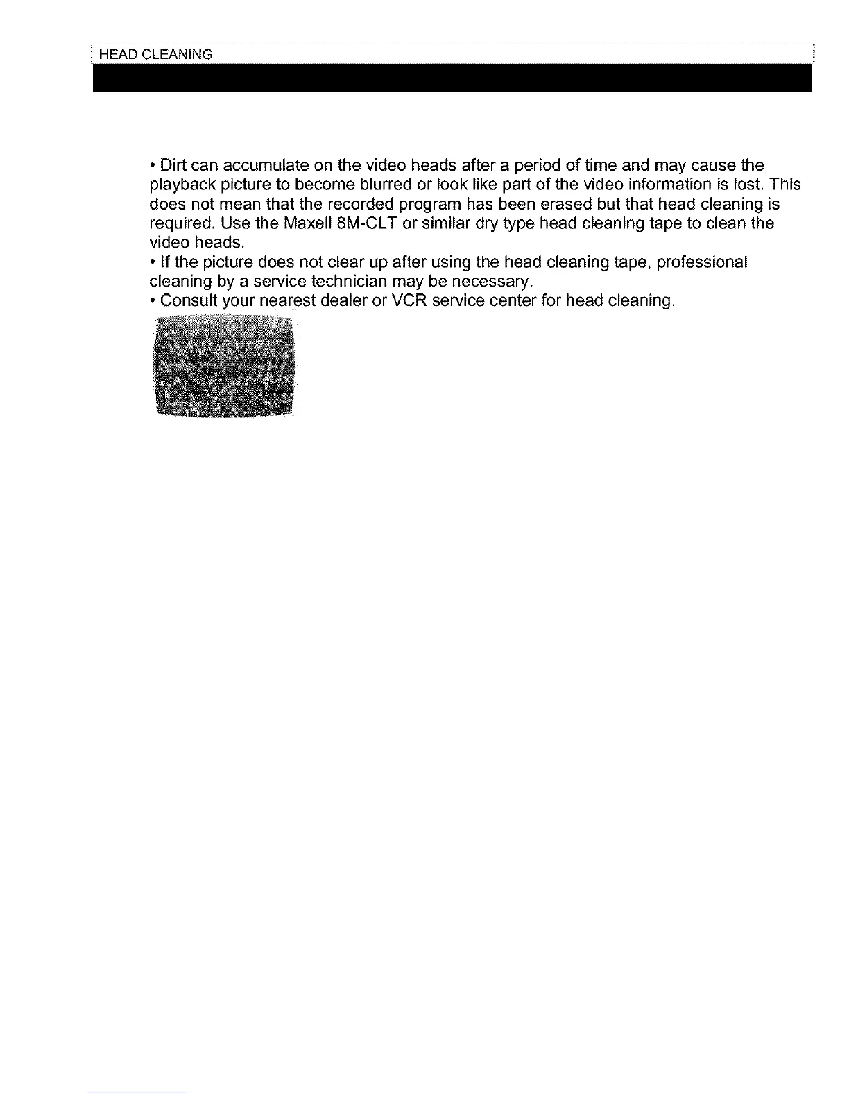 • If the picture does not clear up after using the head cleaning tape, professional