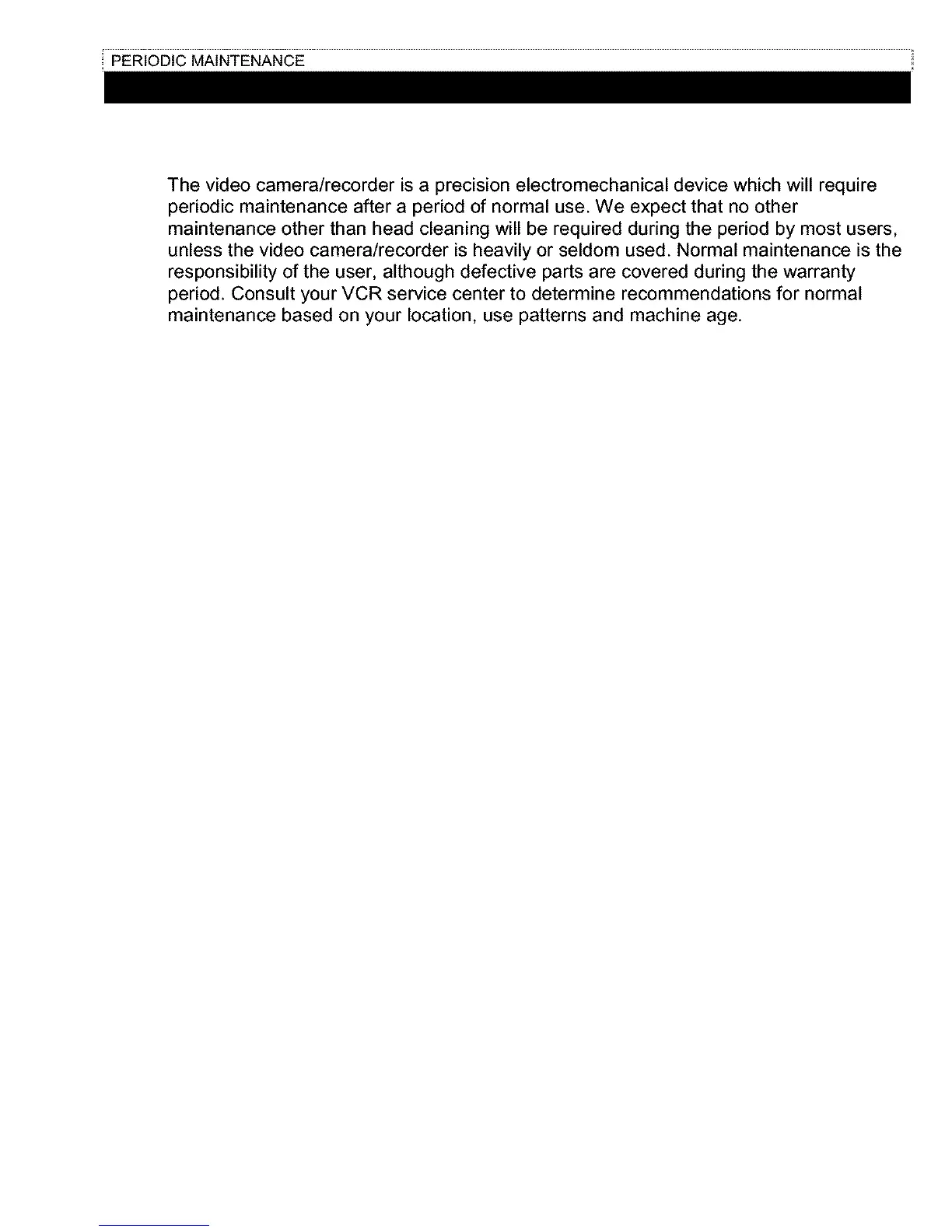 unless the video camera/recorder is heavily or seldom used. Normal maintenance is the