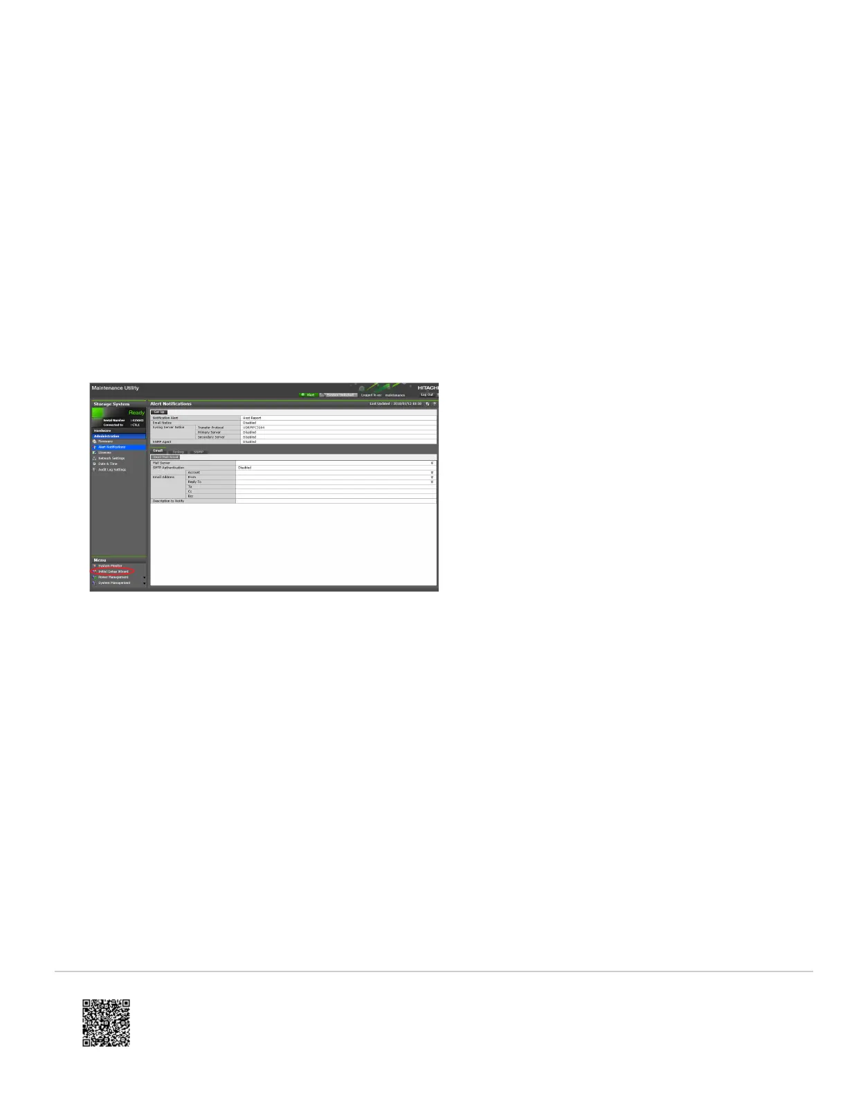 Log in to Storage Advisor Embedded, and then open the maintenance utility by clicking the gear icon at the top-right
