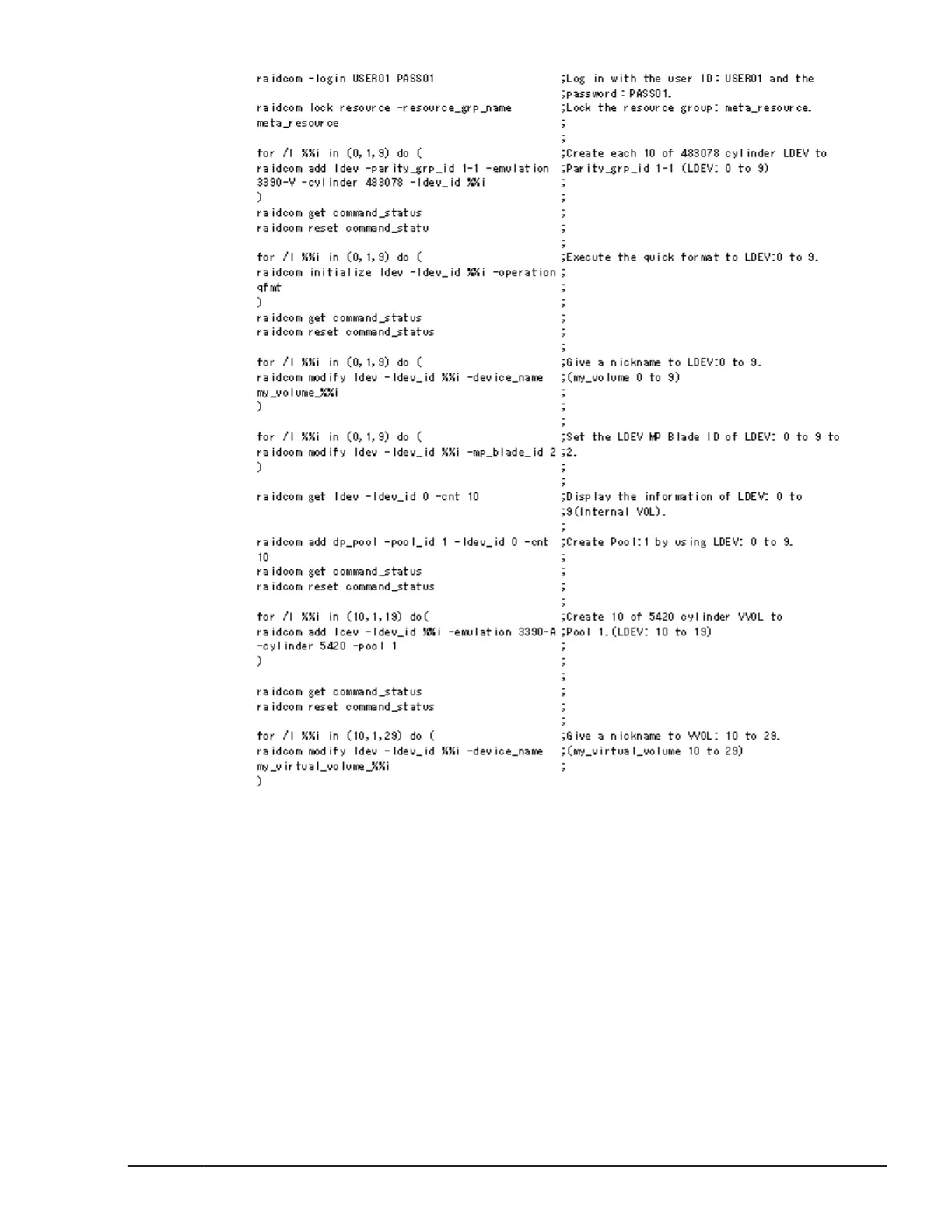 Figure 5-11 Script examples of virtual volume operation (Dynamic