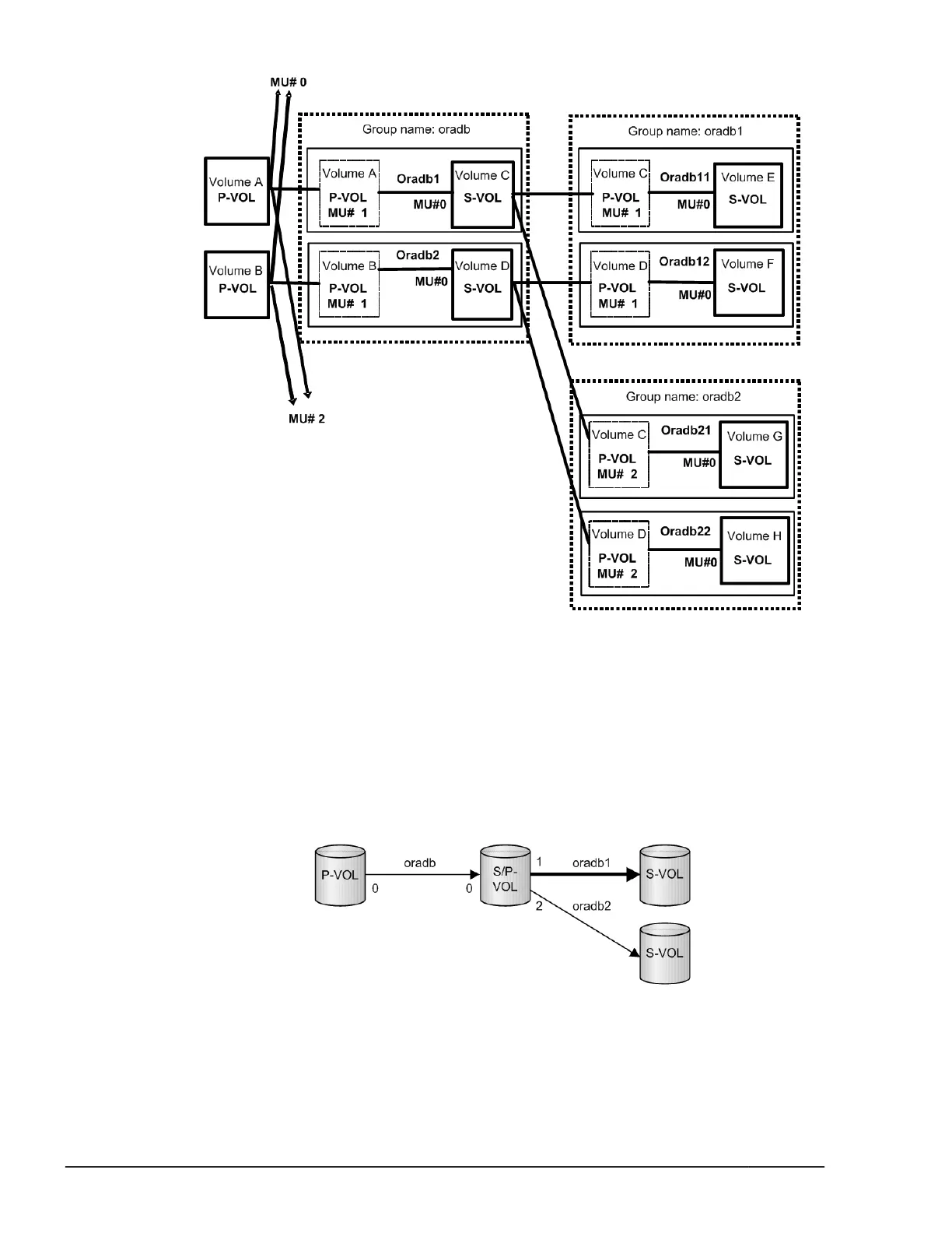 the pair creation of S/P-VOL (oradb). If you create the oradb1 pair first