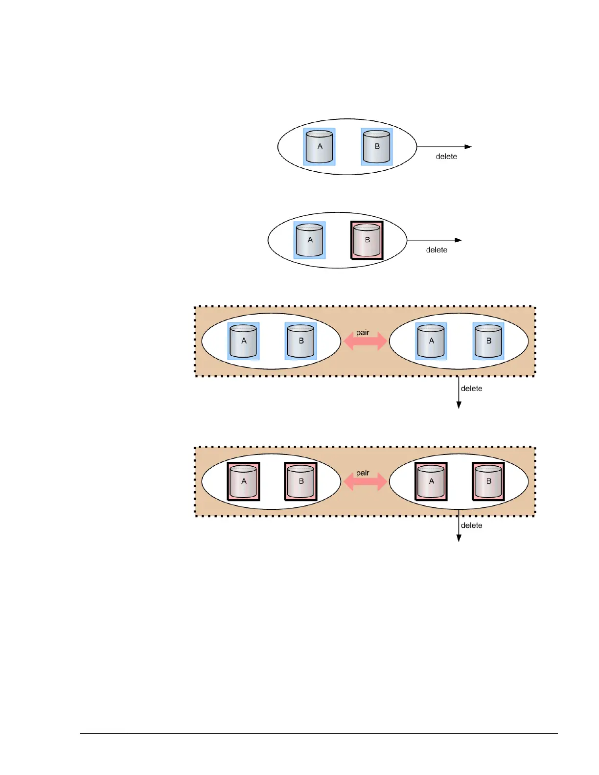 • Deleting a device group configured of paired volumes and associated with