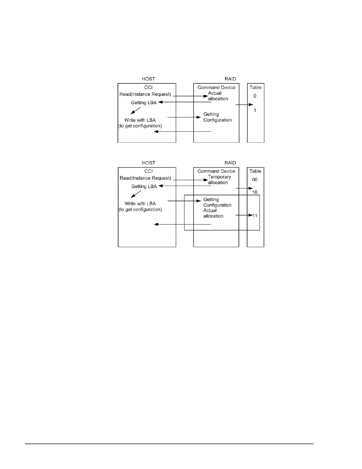 with "temporary allocation (1 0)" status. After that, the command device will