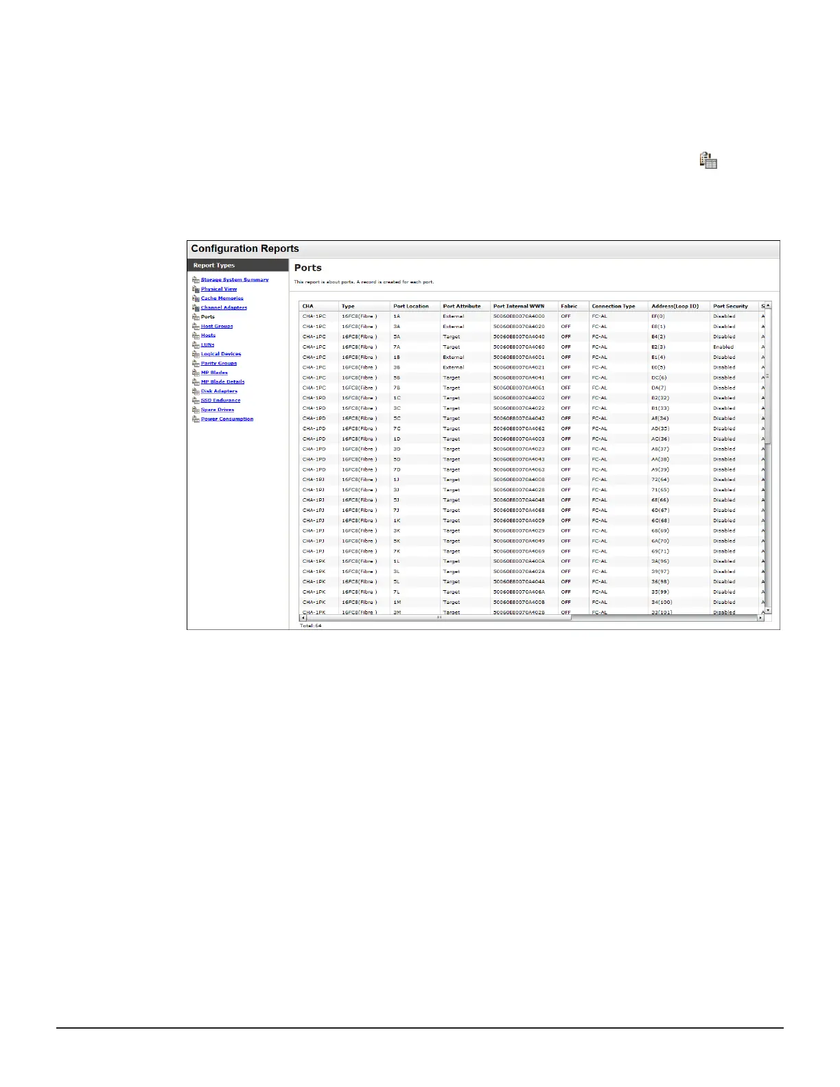 Some Device Manager - Storage Navigator reports appear in table format.