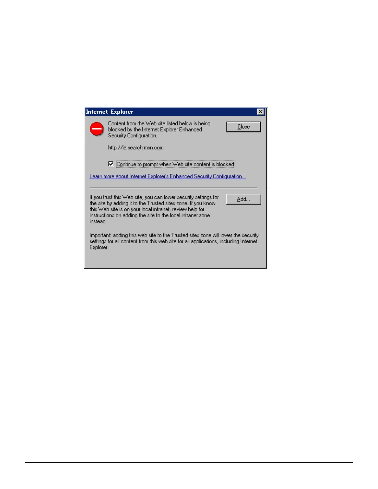 1. Click Add in the message dialog box. The Trusted Sites dialog box