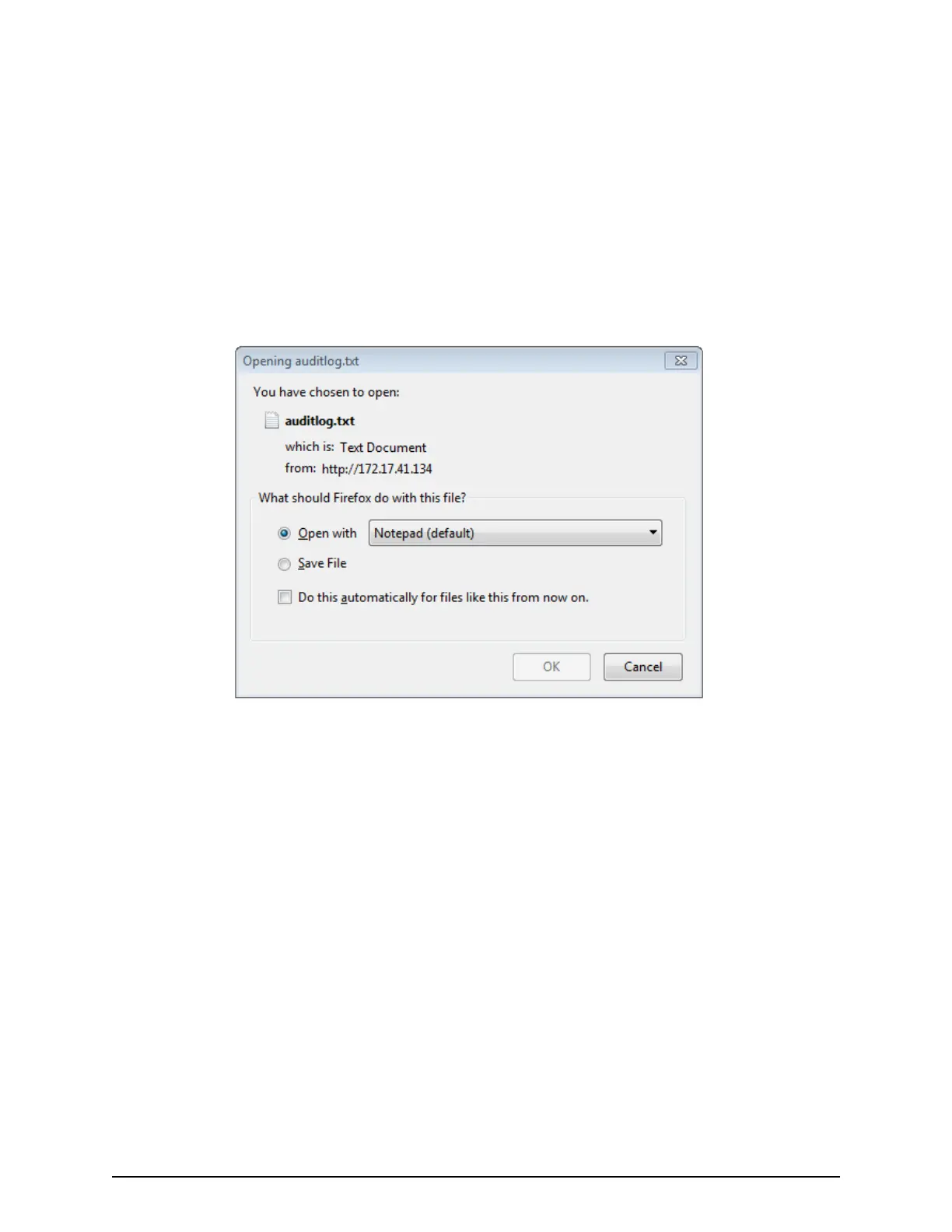 4. Click OK. The auditlog.txt î ´le is displayed.