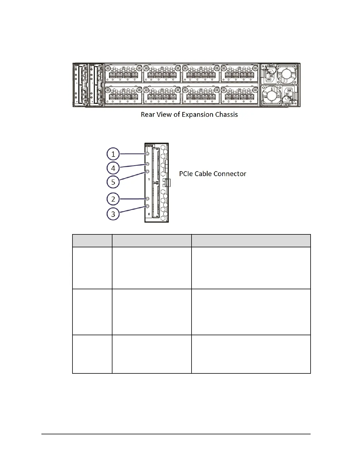 1 STATUS LED Green: PCIe cable connector is powered on.