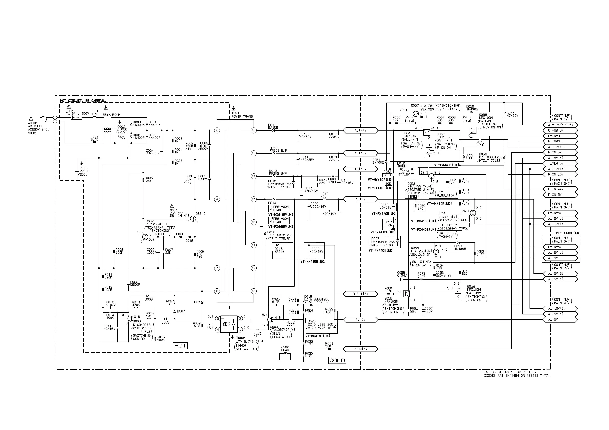 Fixed voltage (or Auto voltage selectable) power supply circuit is used in this unit.