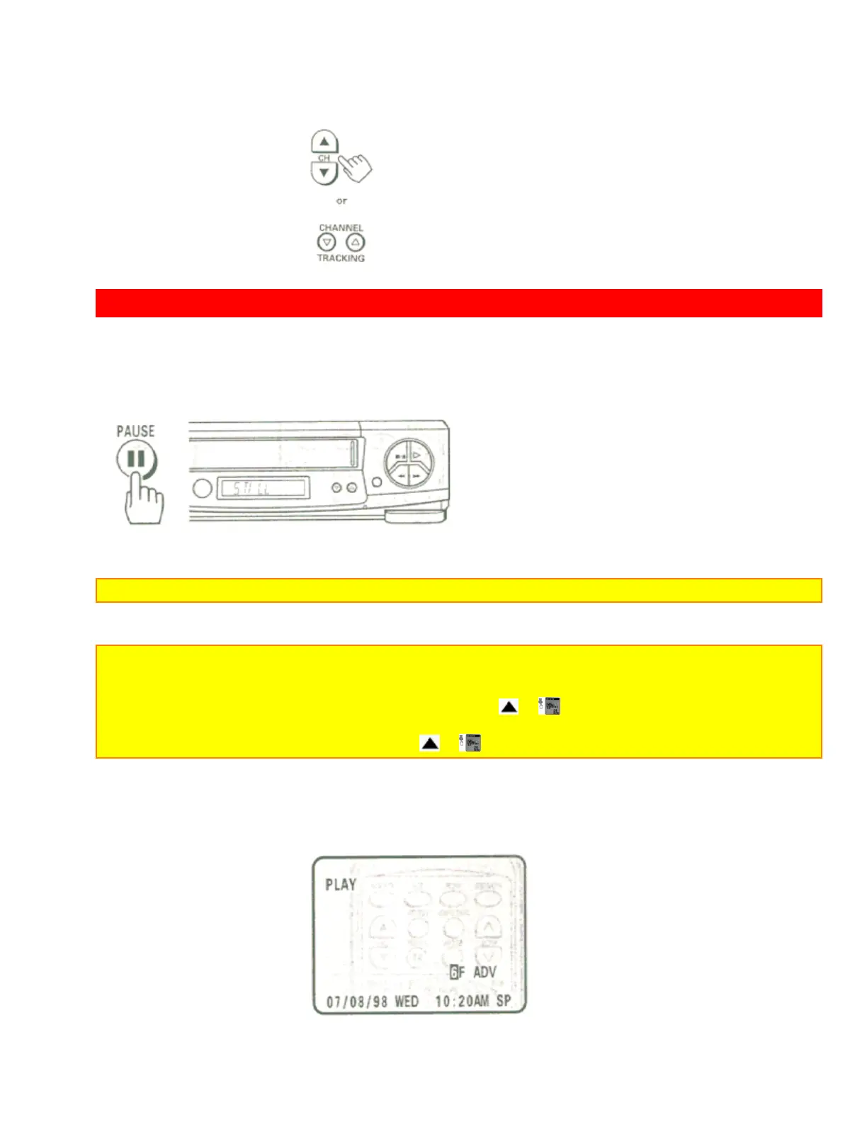 • If noise bars appear on the TV screen during the PAUSE mode, first set the VCR to the SLOW mode by