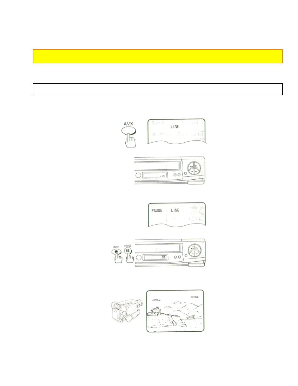 2 Press the REC, then PAUSE buttons on the VCR remote control. The VCR will go into Record/ Pause.