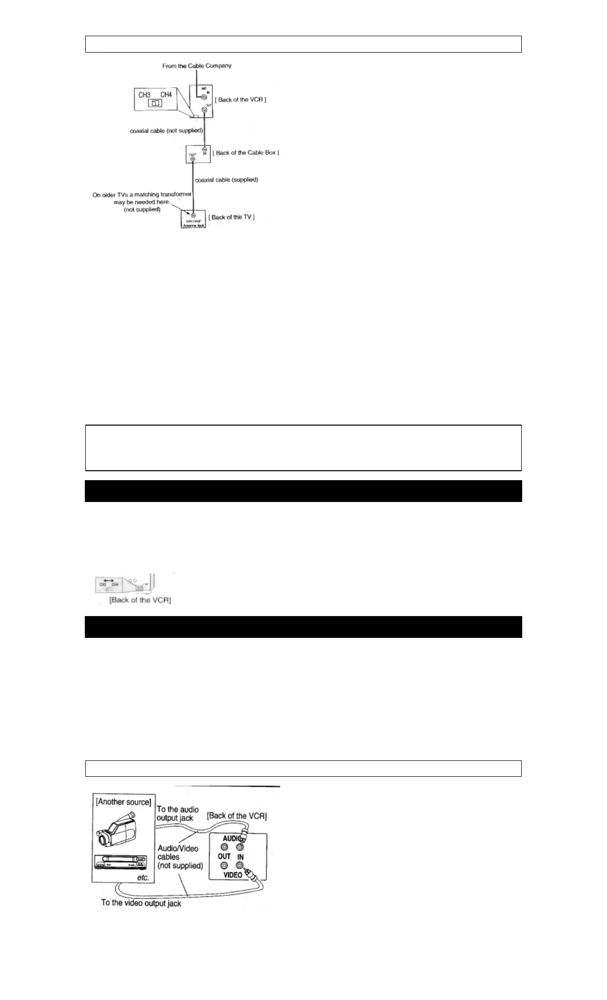 5) Set the CH3/CH4 switch on the back of the VCR to match the channel set on the TV.