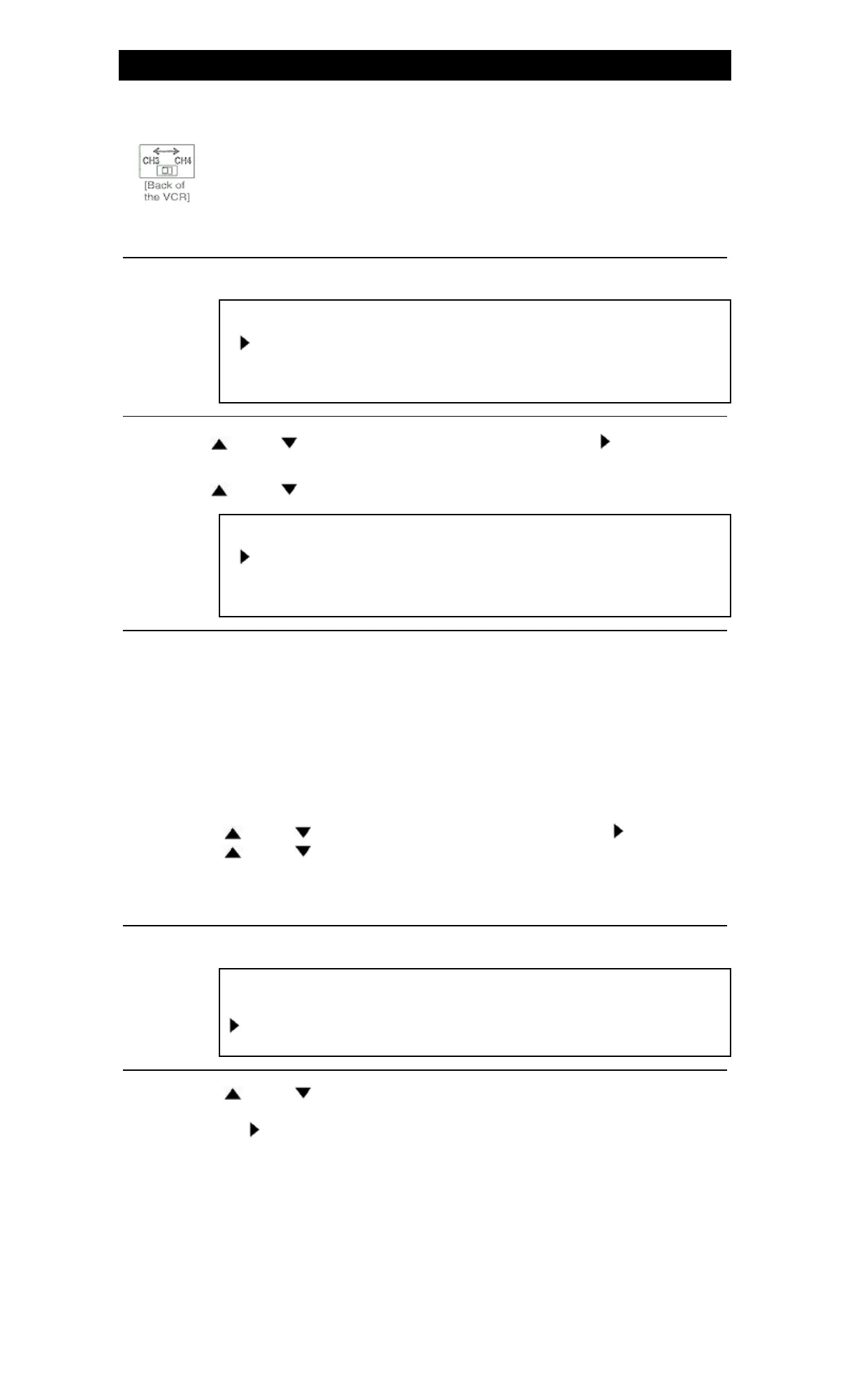 • Turn on the TV and set the TV to channel 3 or 4. Now set the CH3/CH4 switch on the back of the VCR to match the