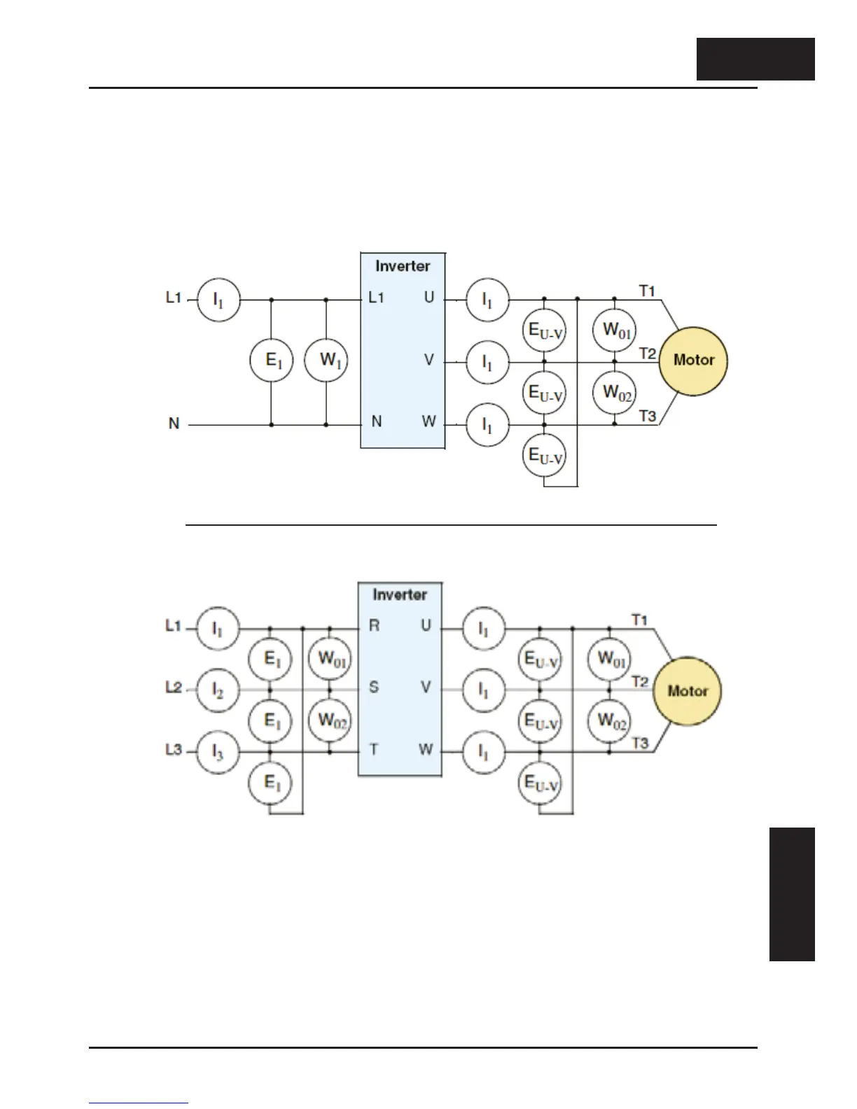 The figures below show measurement locations for voltage, current, and power