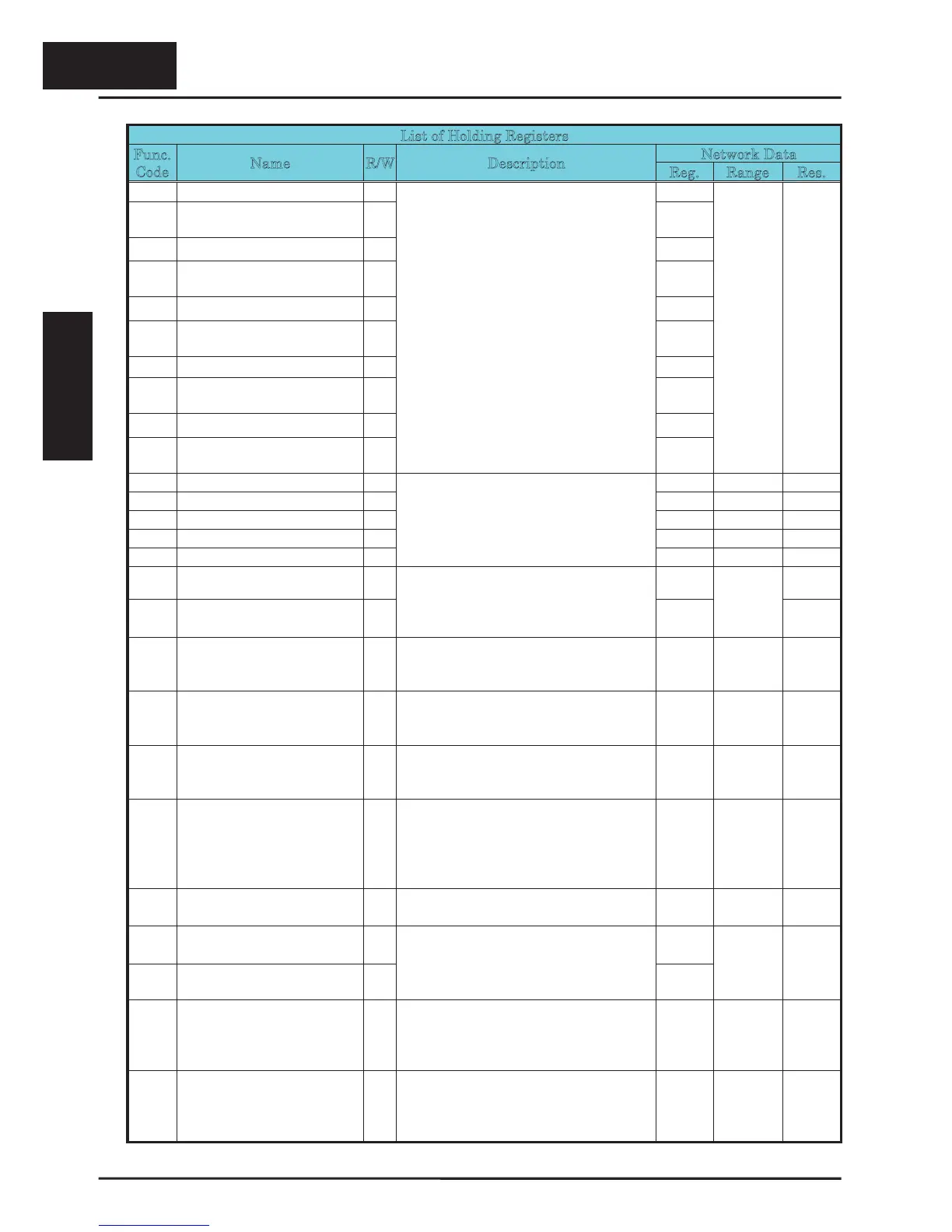 List of Holding Registers