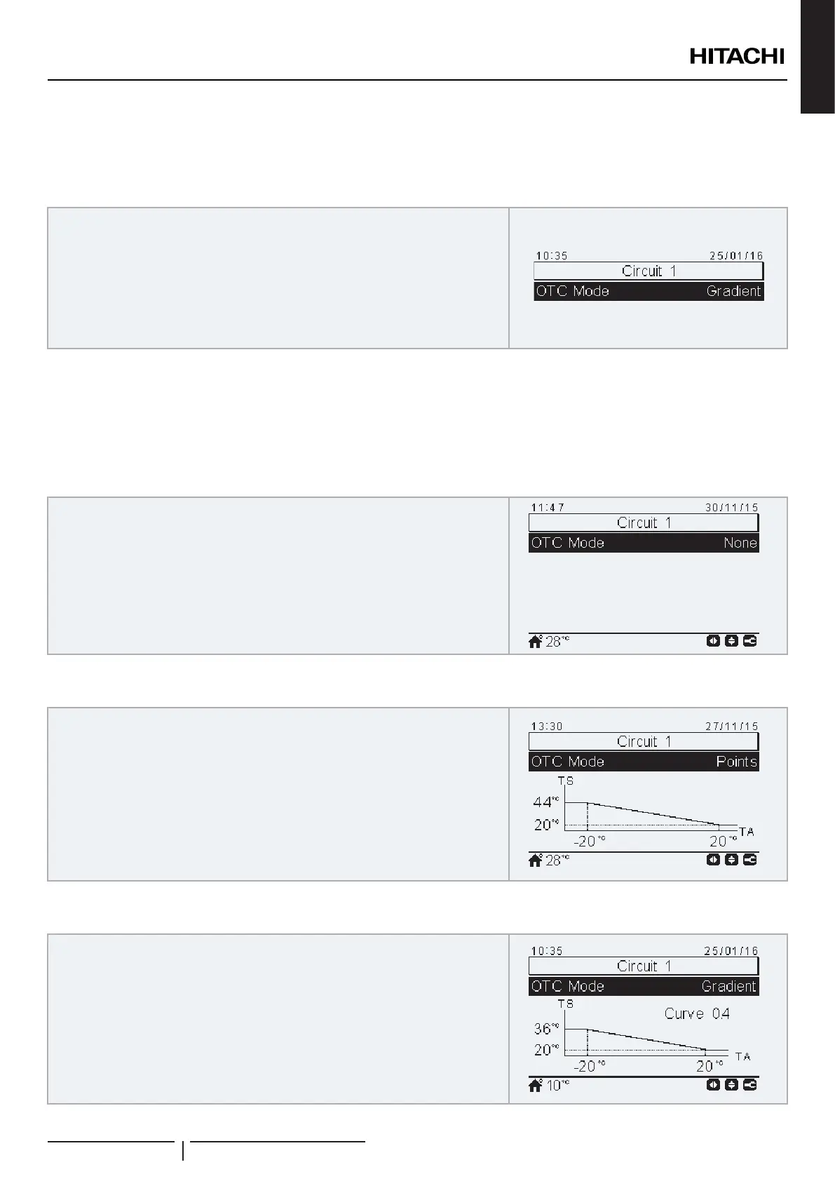 It calculates the temperature setting using a gradient congured by the installer. In this view