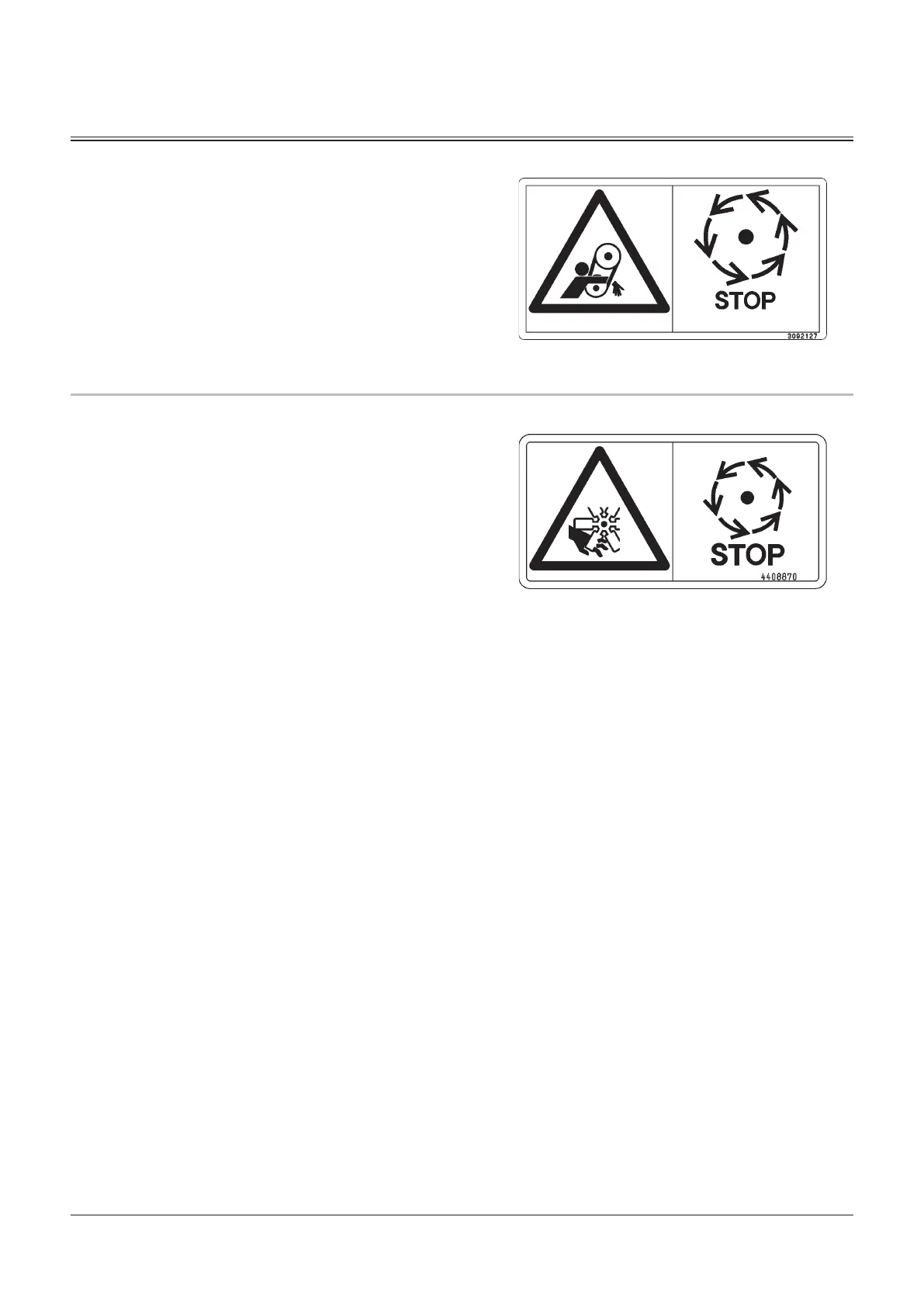 Sign indicates a hazard of rotating parts, such as belt.