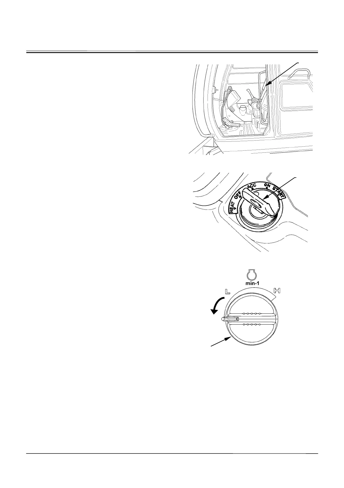 1. Pull the pilot control shut-off lever (1) up to the LOCK
