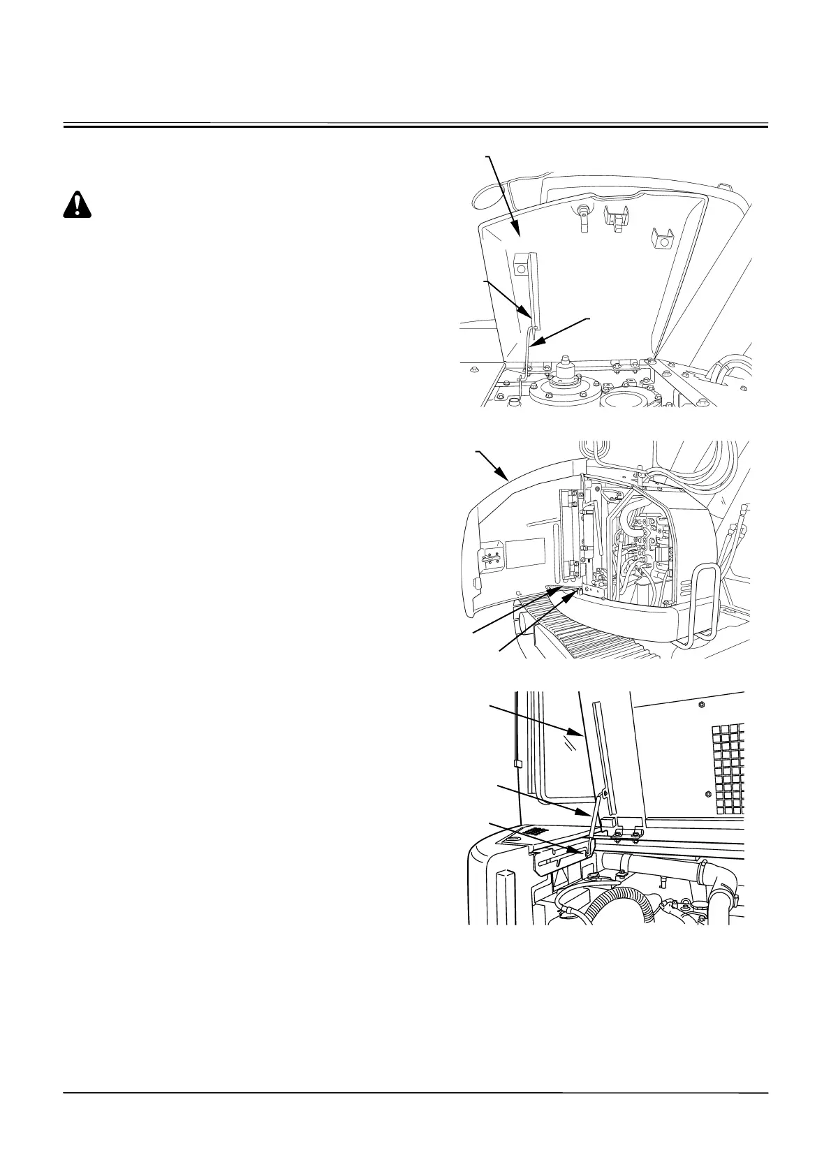 After opening engine cover (7), be sure to support engine